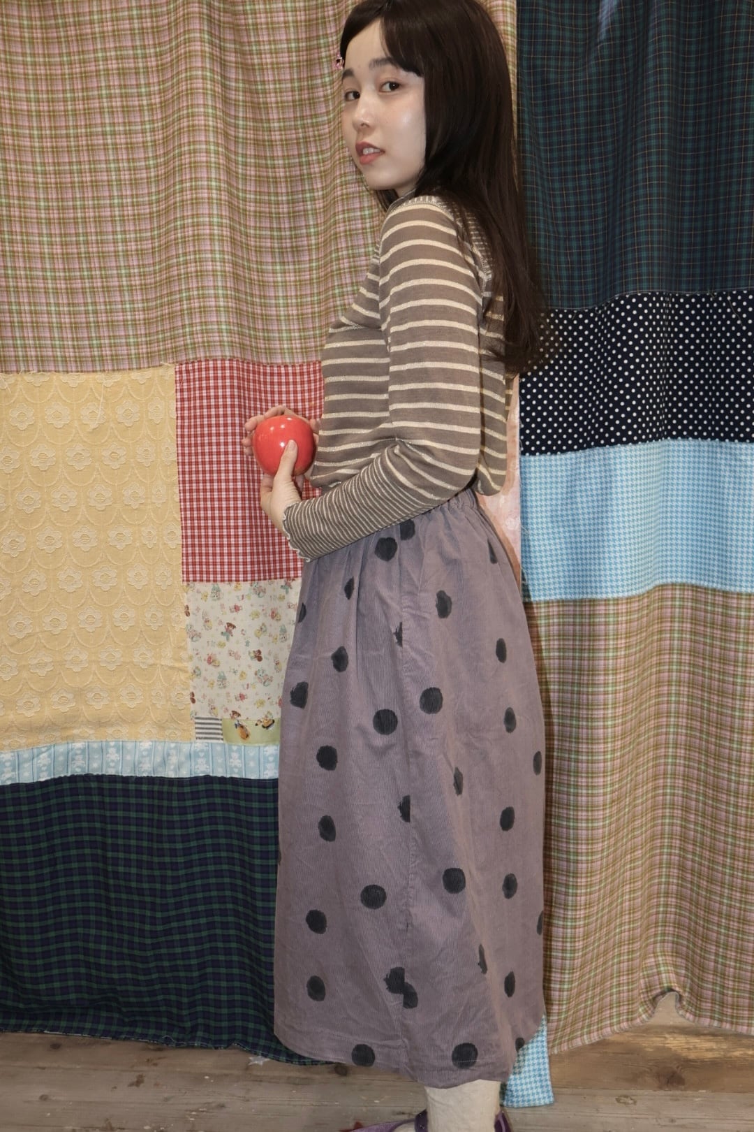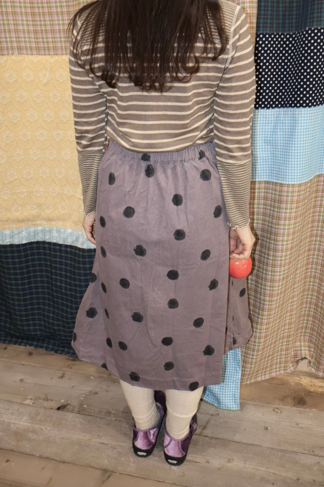 どれみ「小豆色のドットスカート。