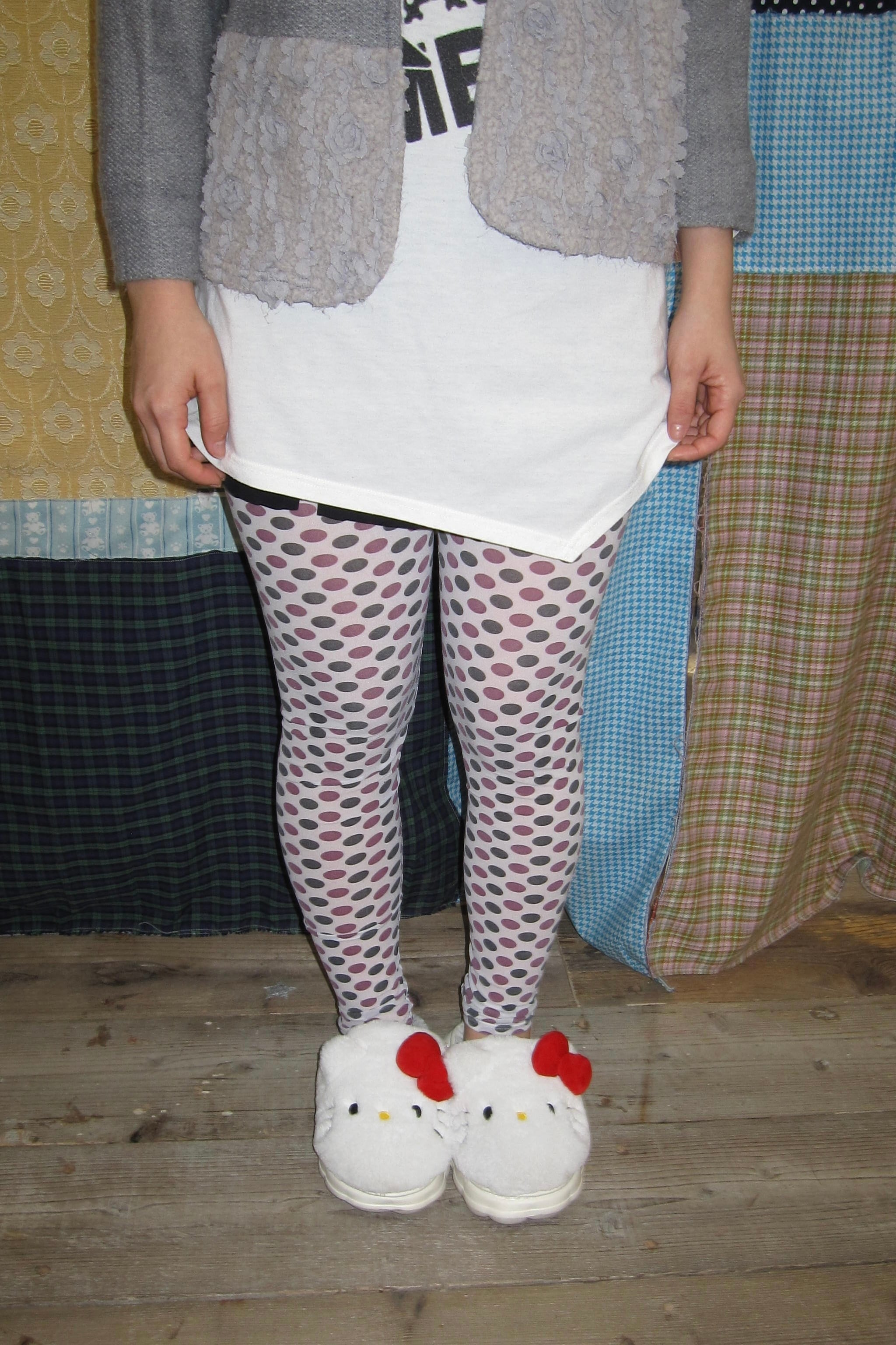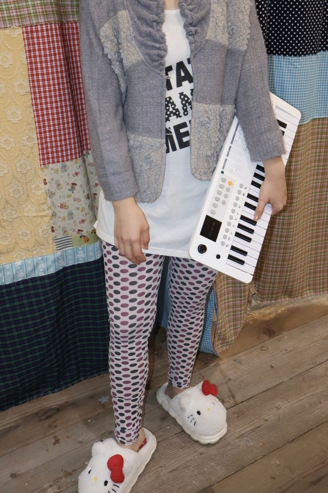 どれみ「パープルと黒のドットがぽつぽつ浮かんでるレギンスなの。