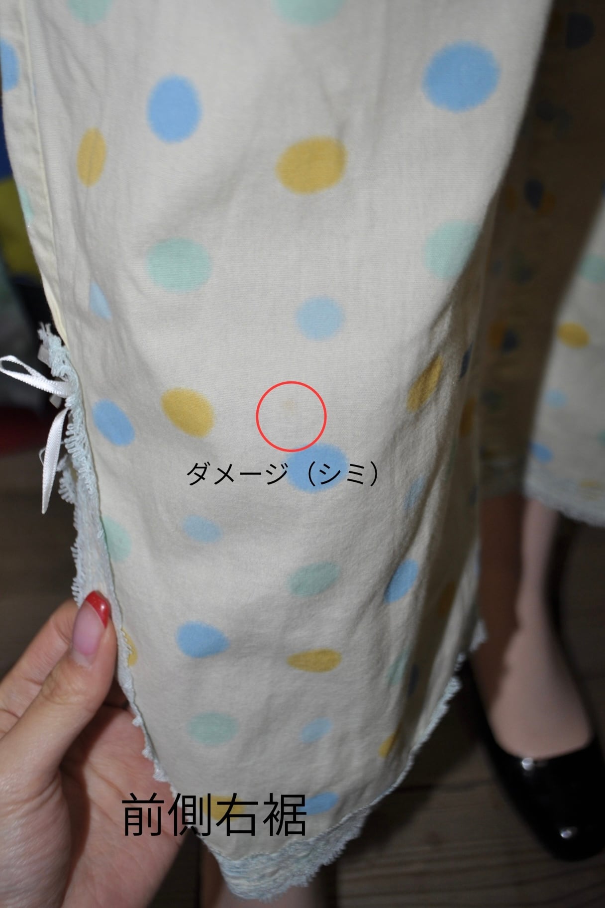 ブルーのドットに裾はブルーのレース。