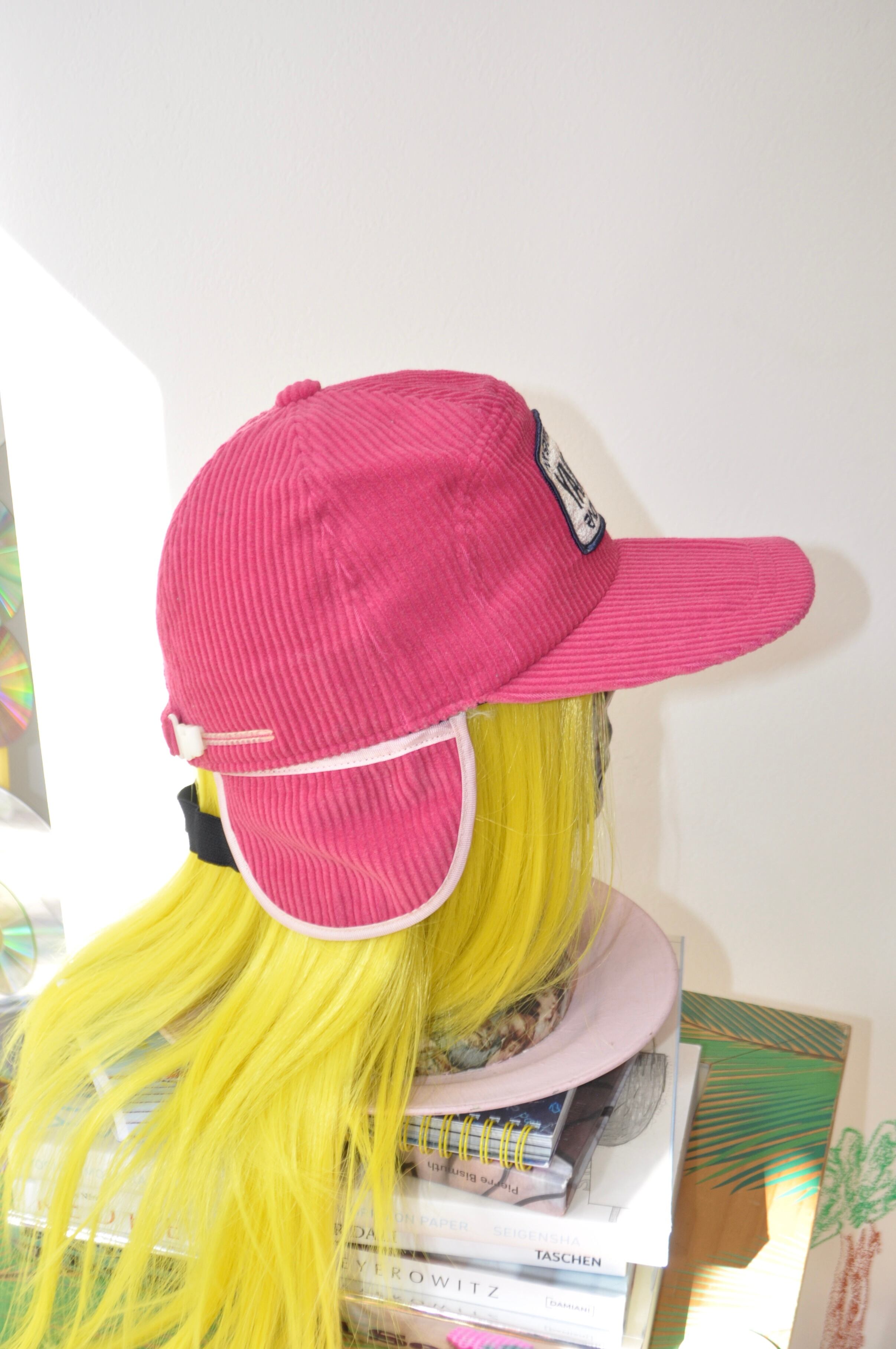 ショッキングピンクで耳当てもついてるの。