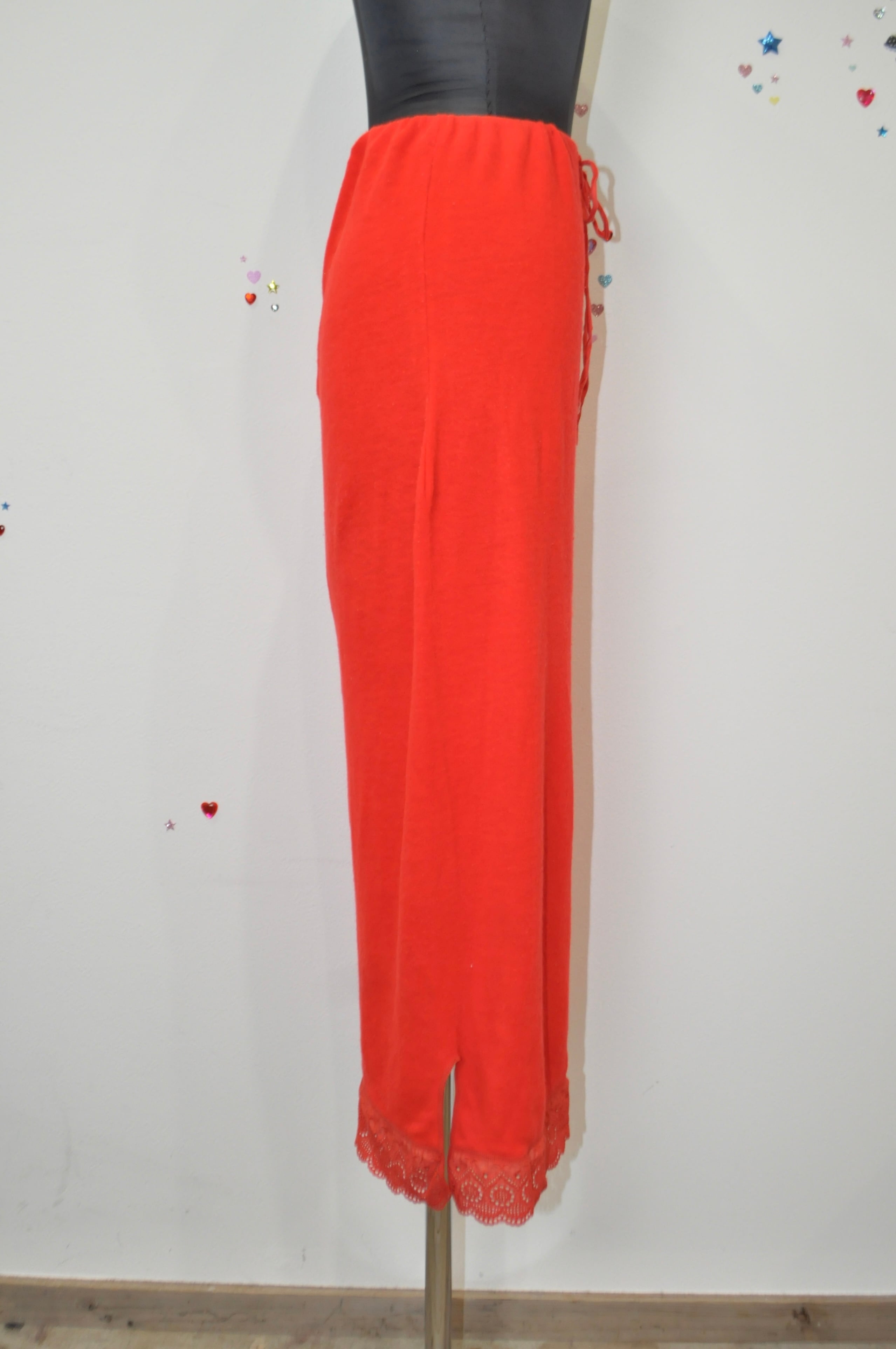 やさしく落ちる生地に裾の赤いレース。