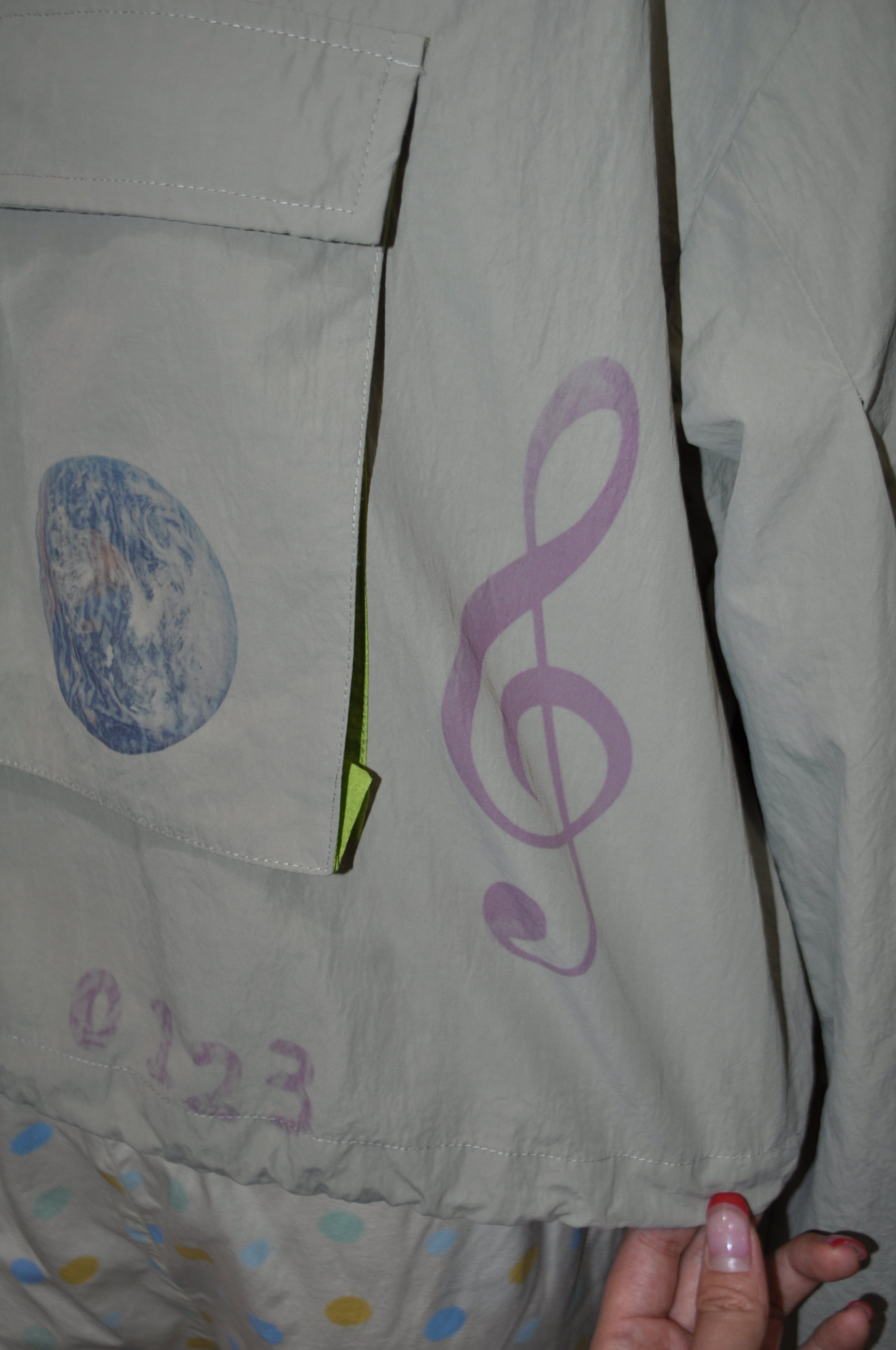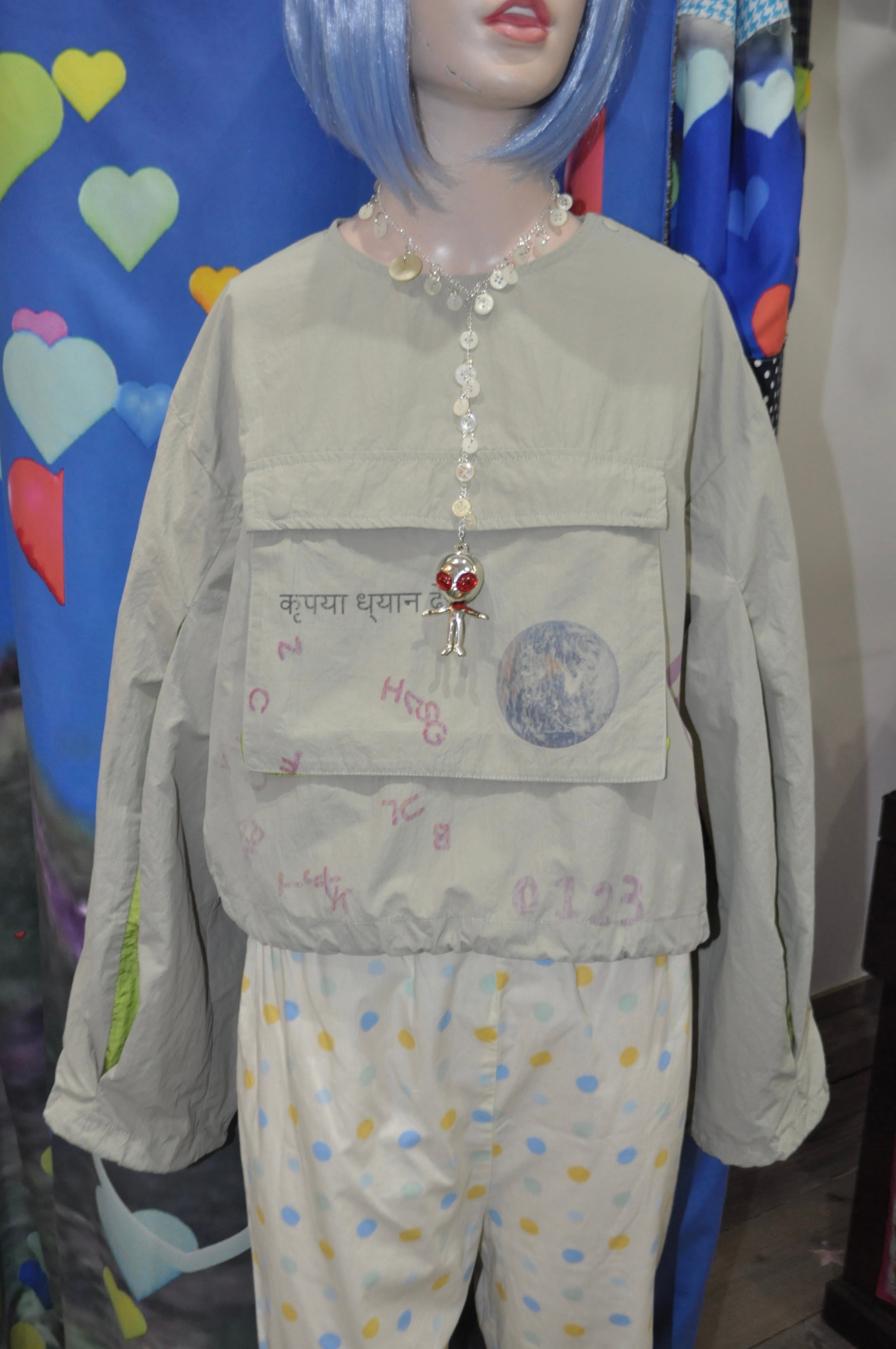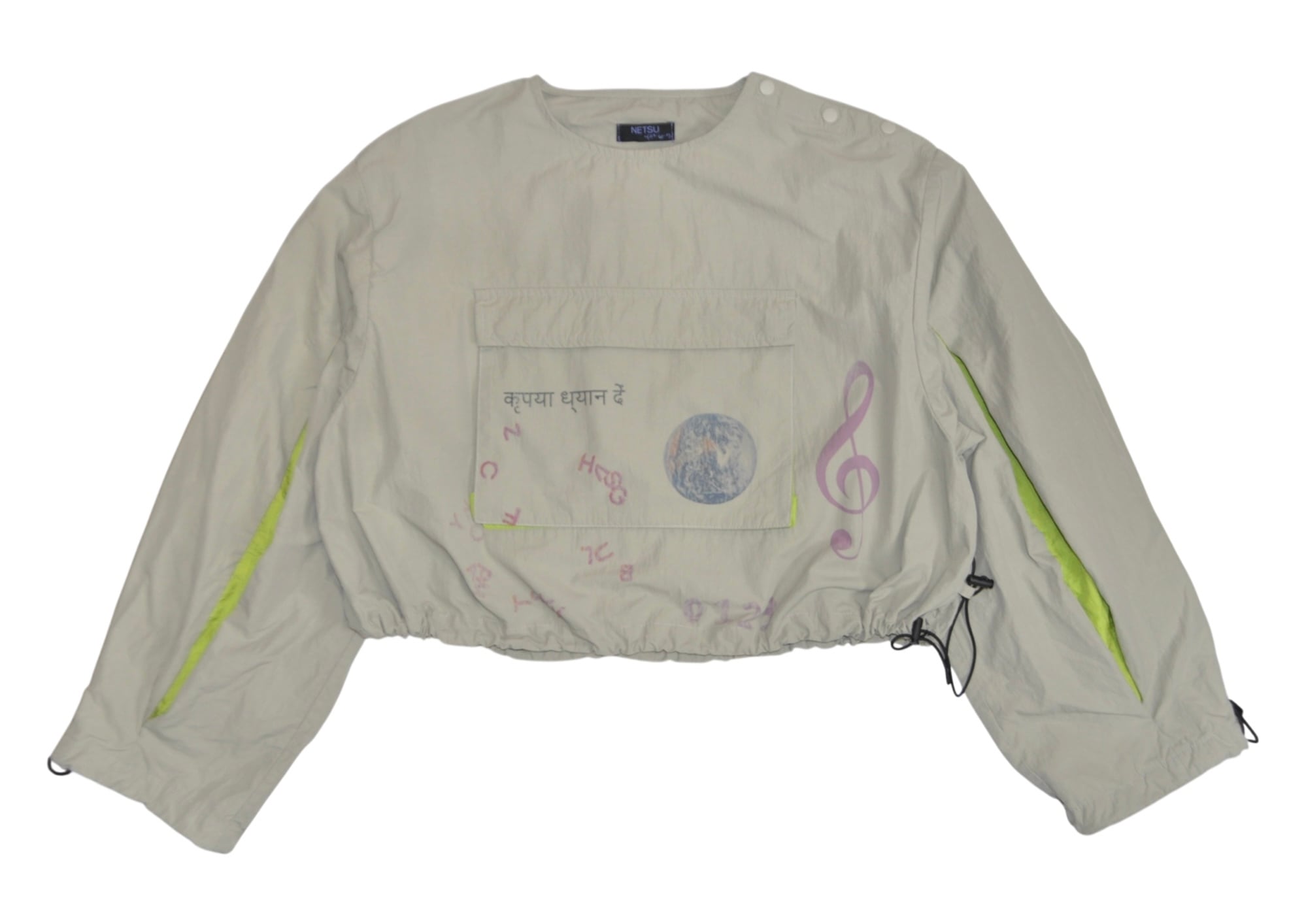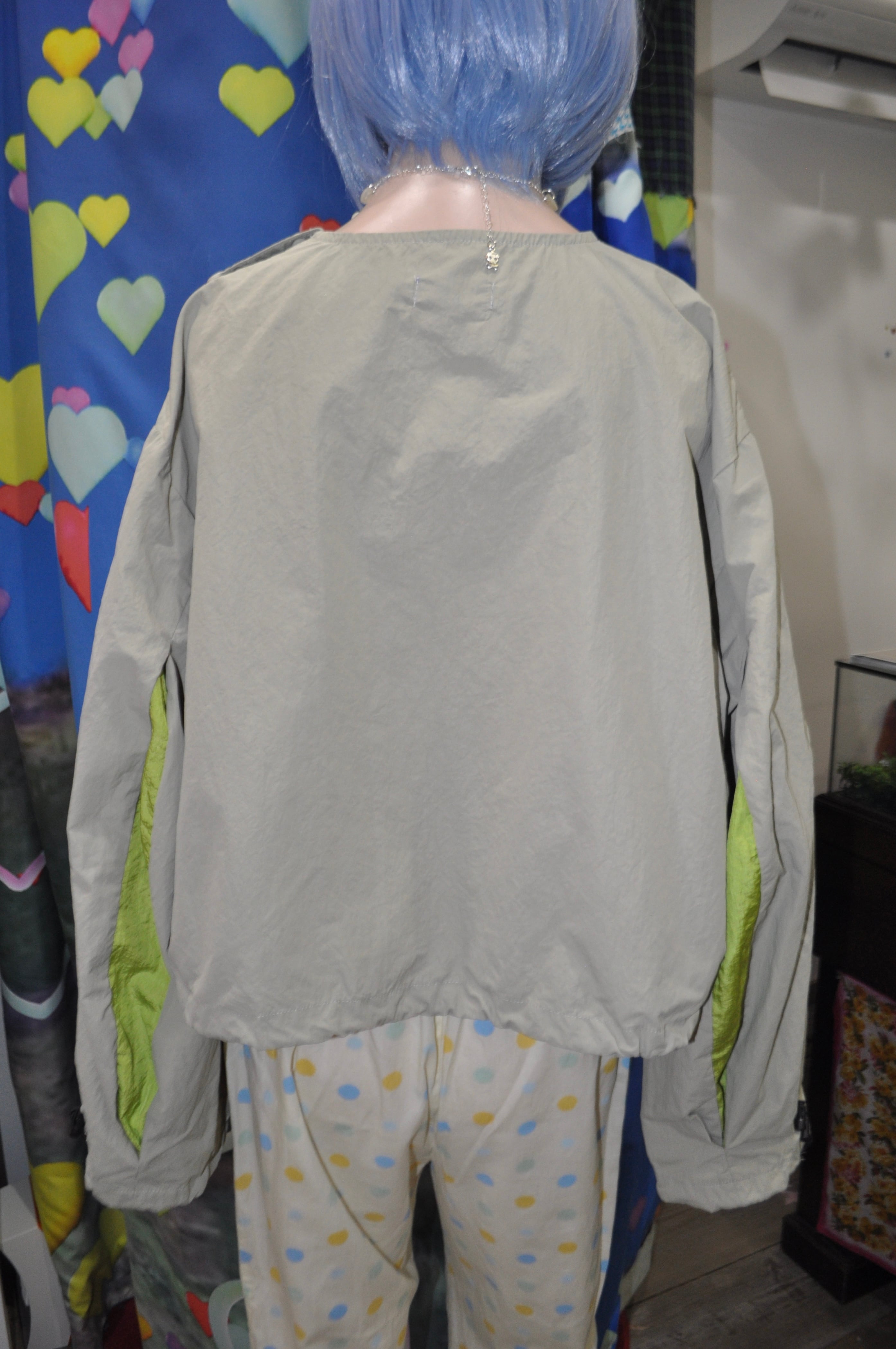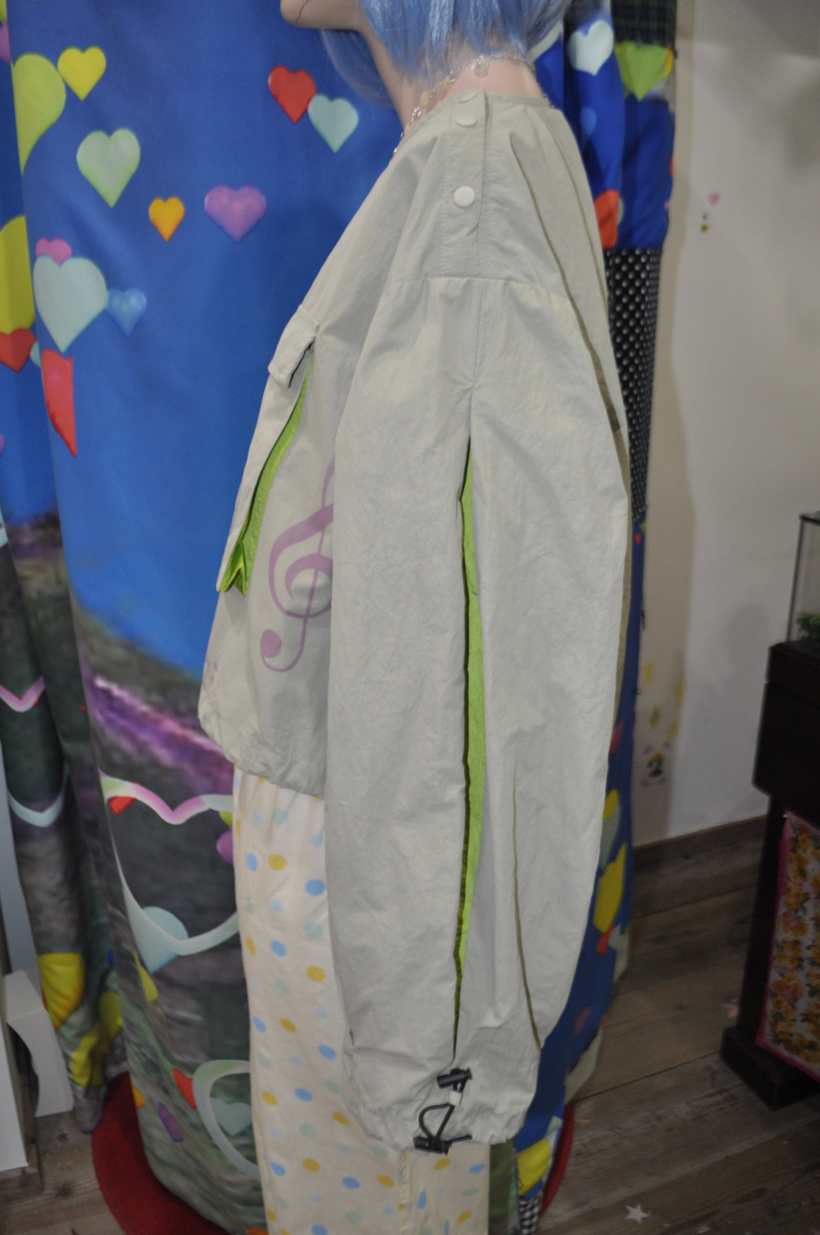 肩にはスナップボタンがついていて、裾と袖はきゅっと絞れるの。