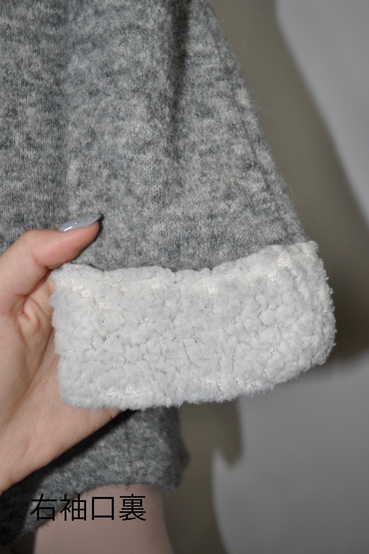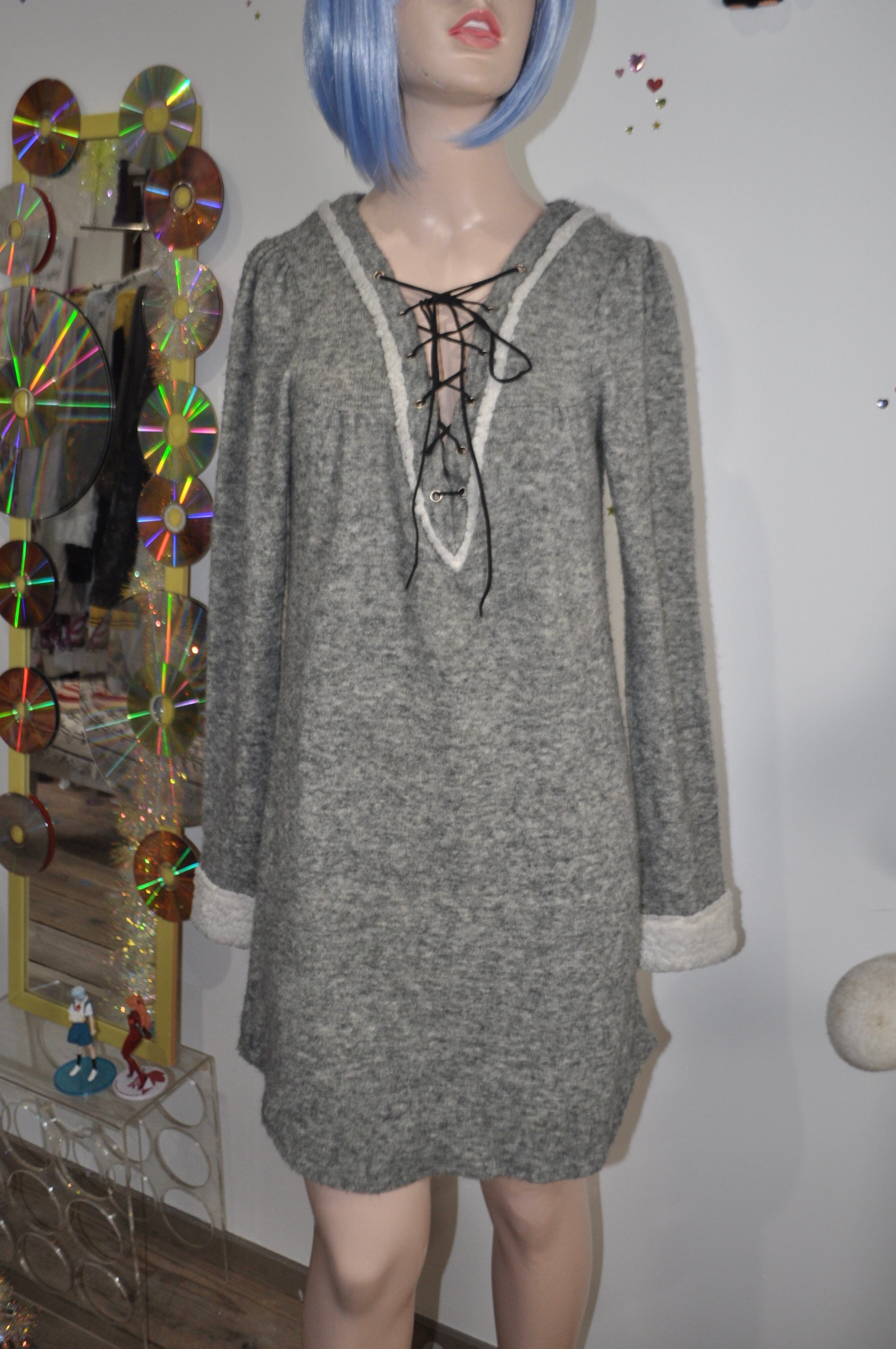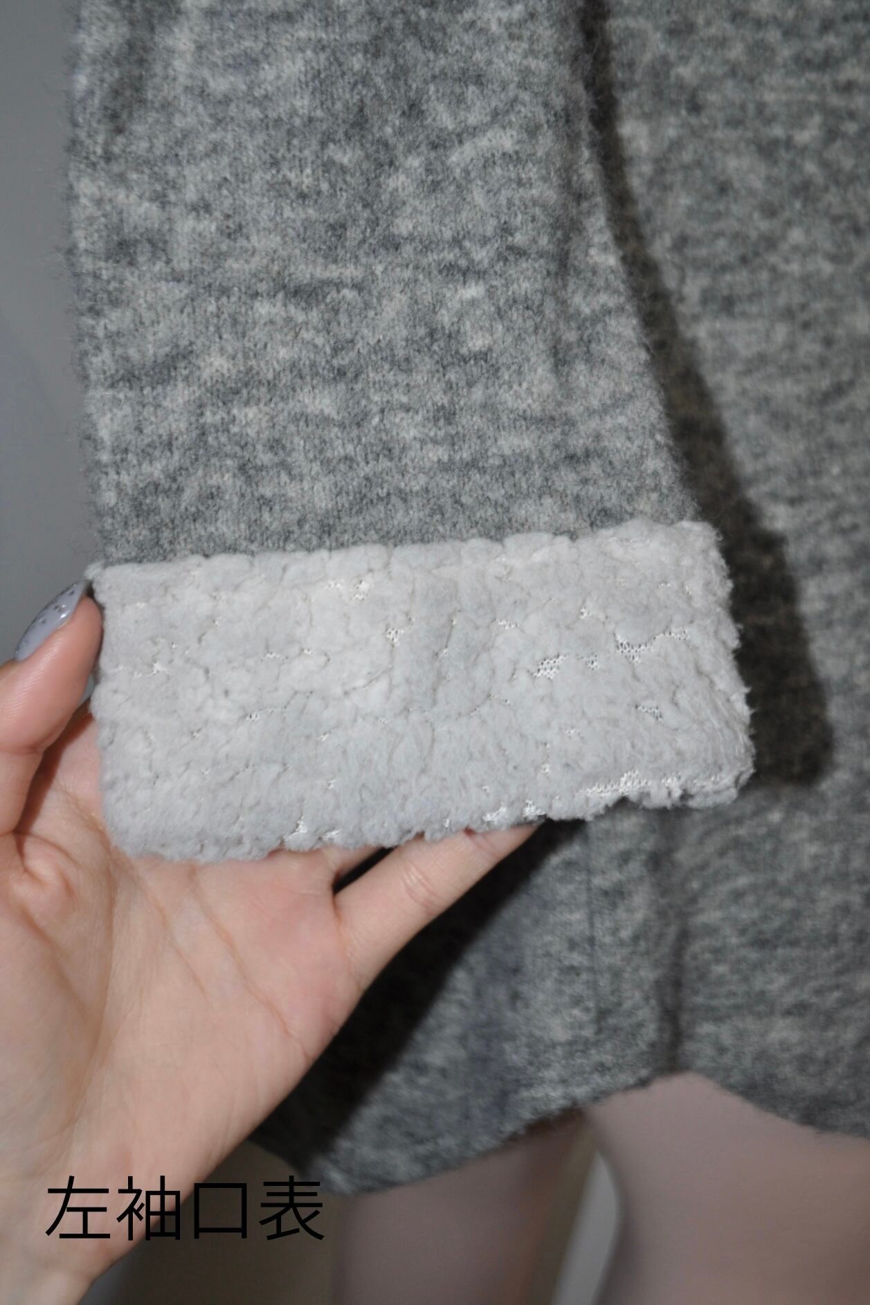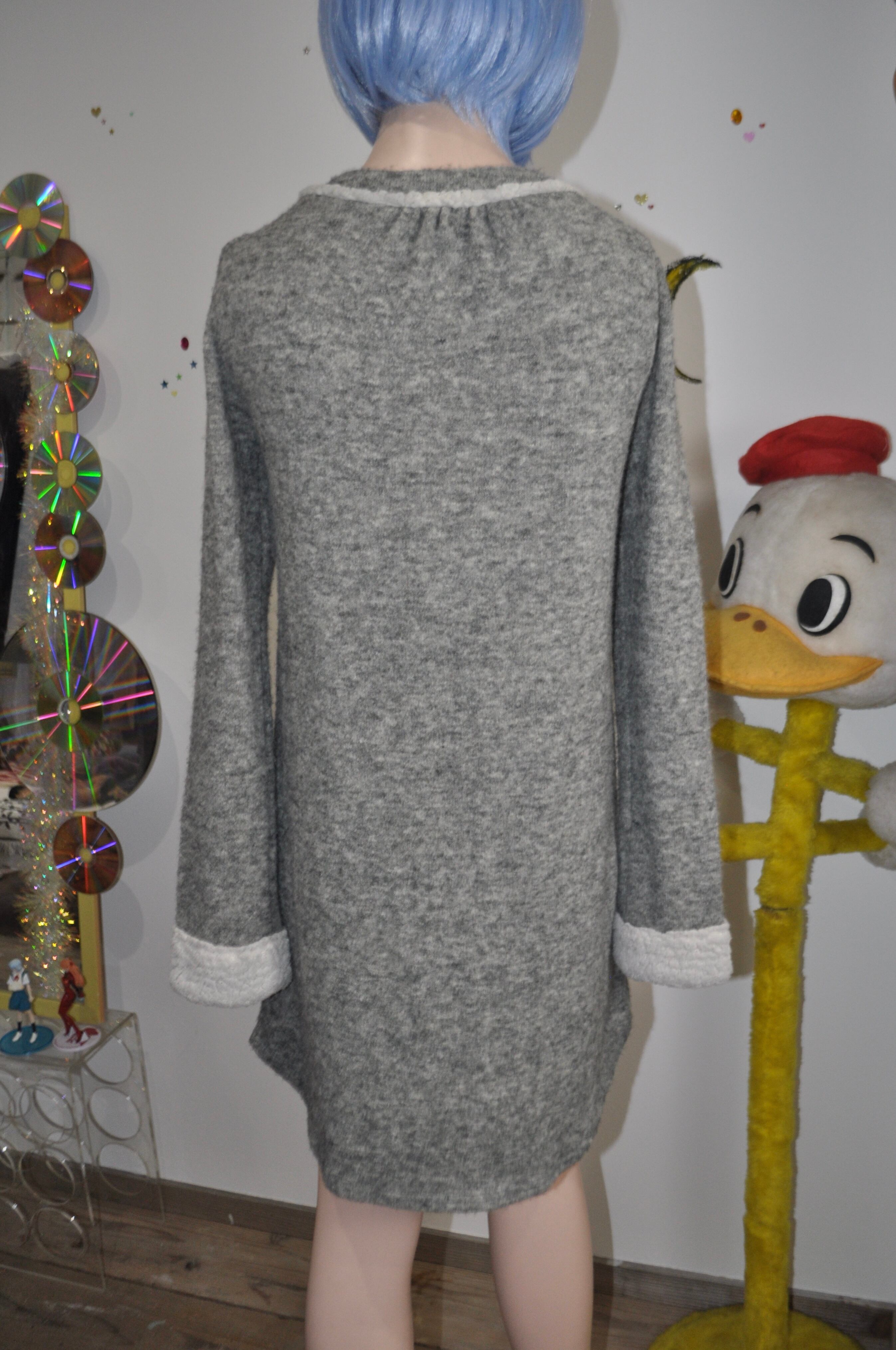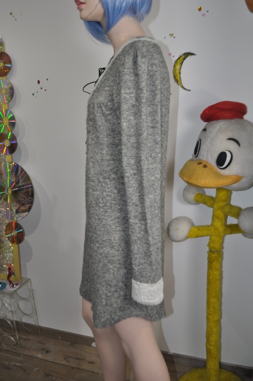 どれみ「グレーのニットワンピース。