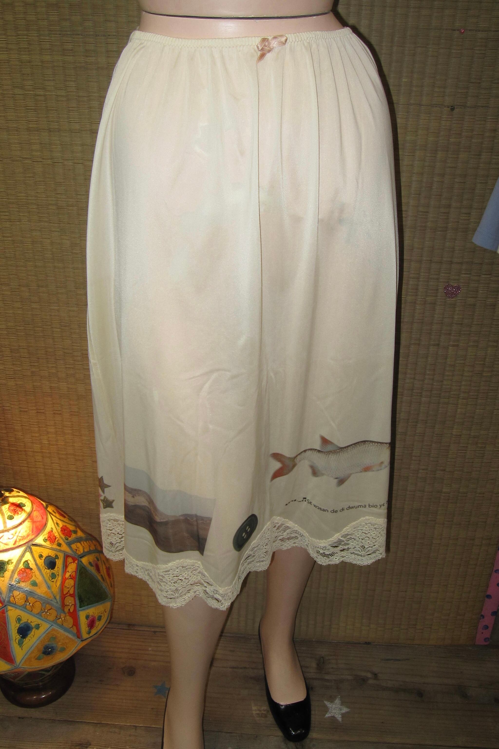 裾には魚やハート、ボタンや砂漠のプリント。