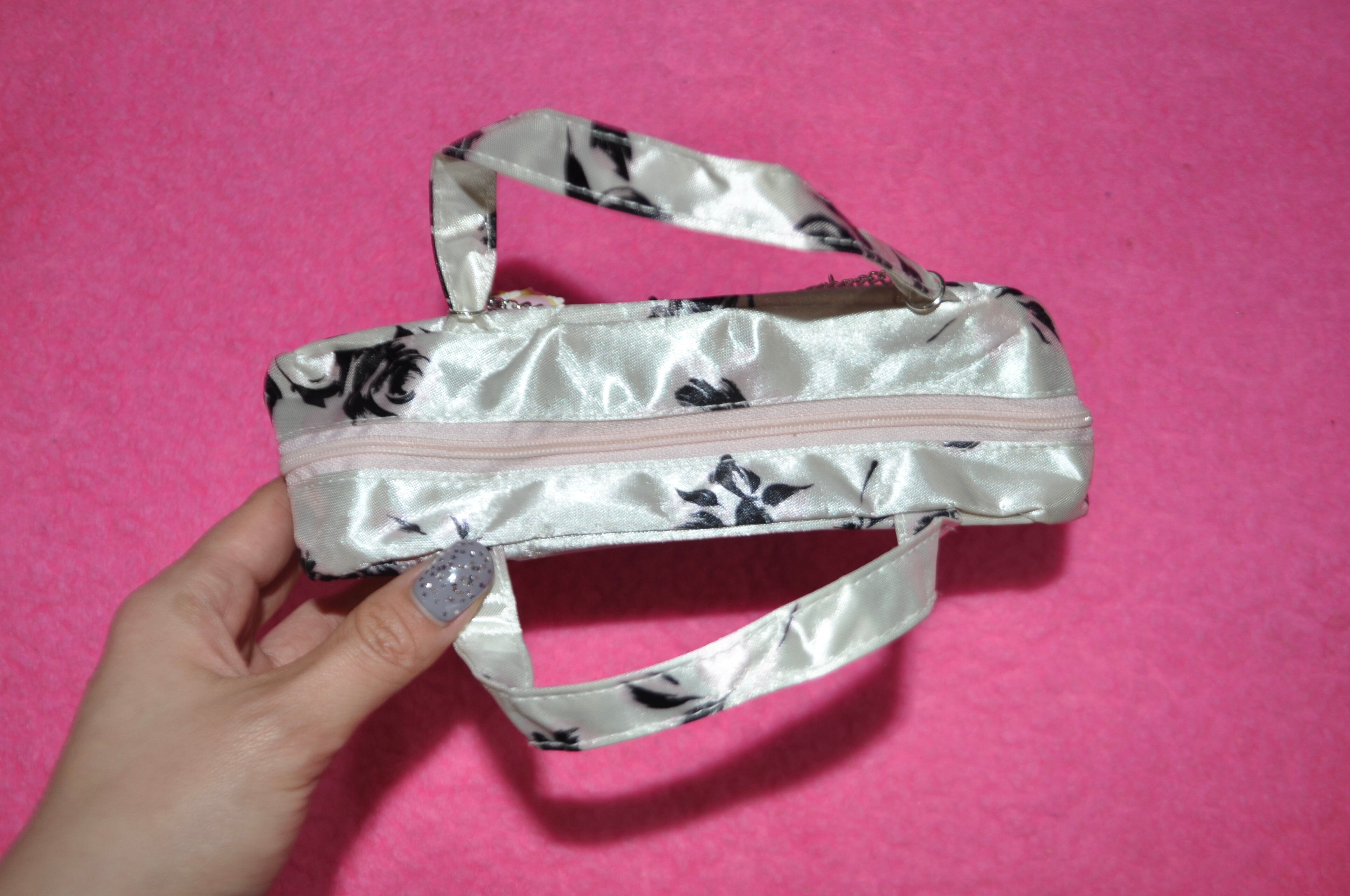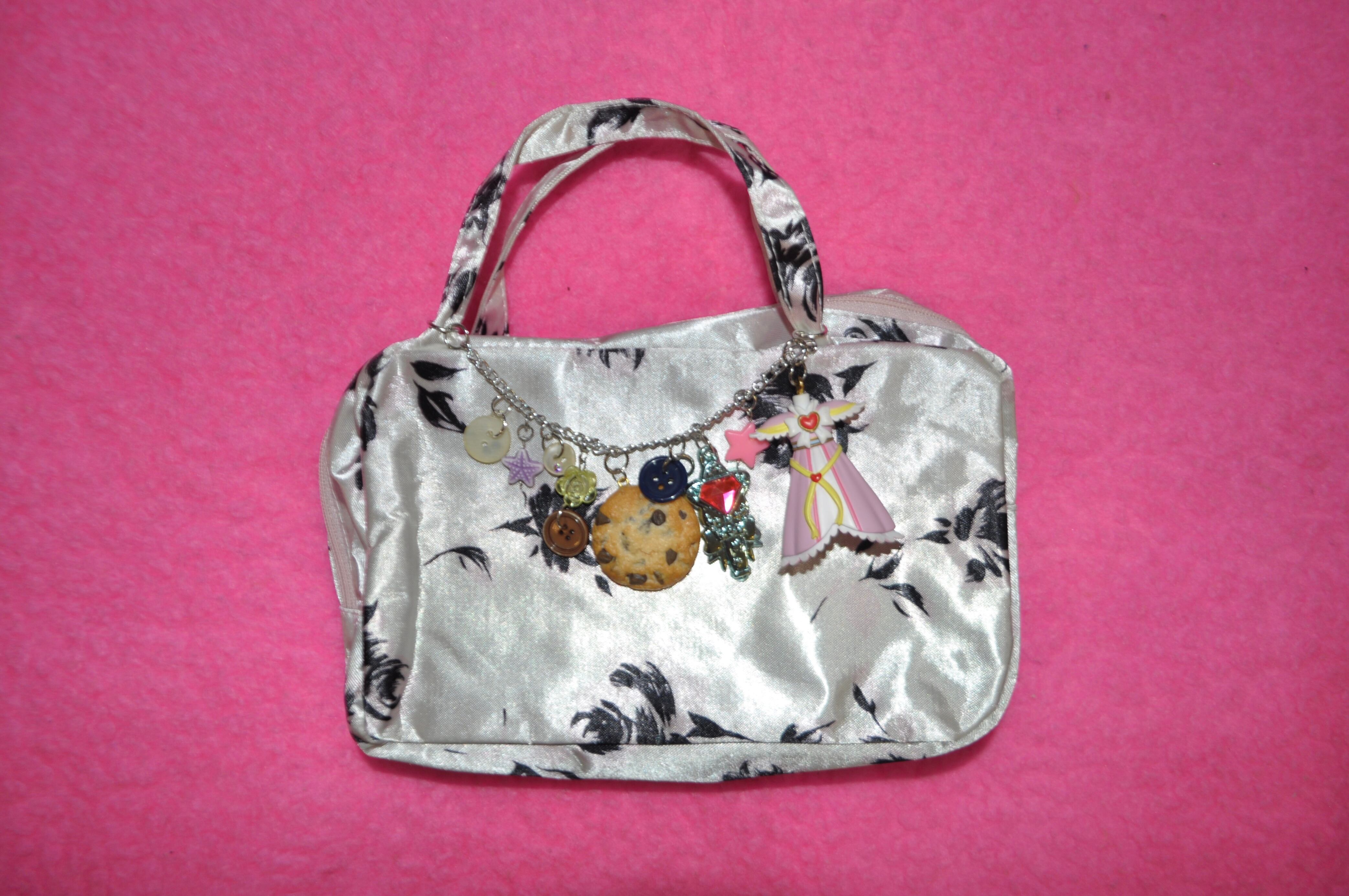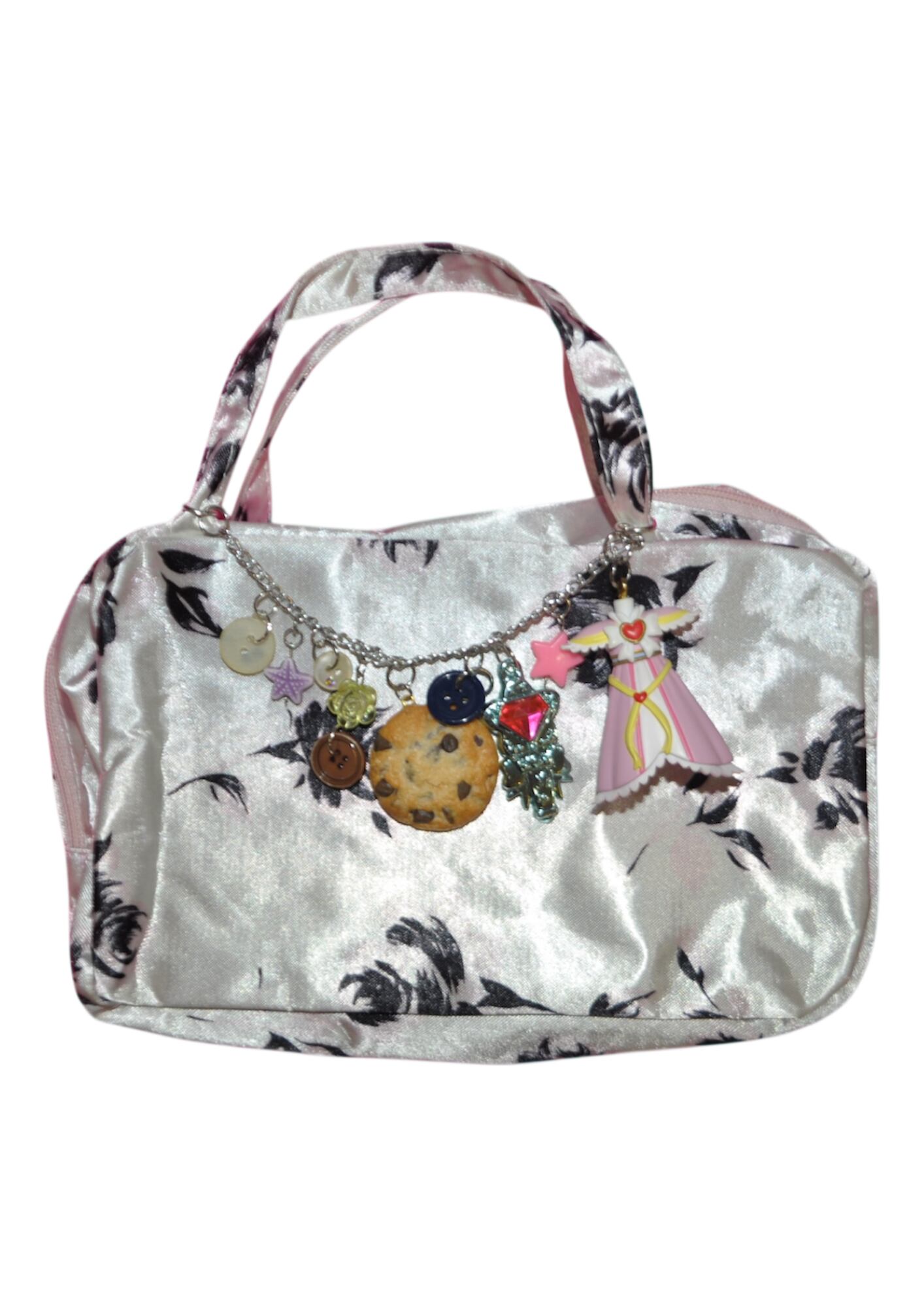 黒とピンクのバラが描かれていて、そこにキラキラのチャームをつけたの。