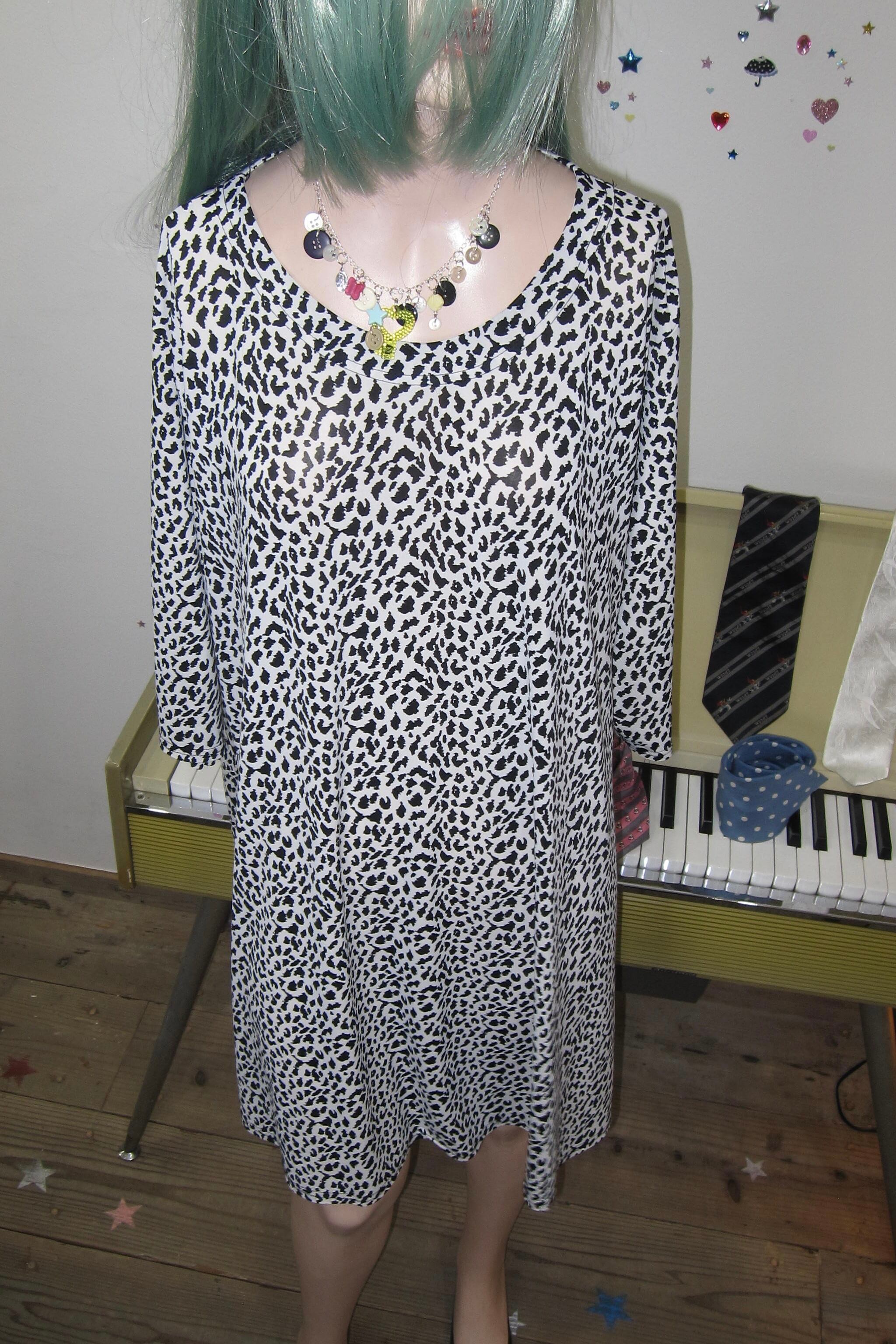 どれみ「白地に黒いレオパードのワンピースなの。