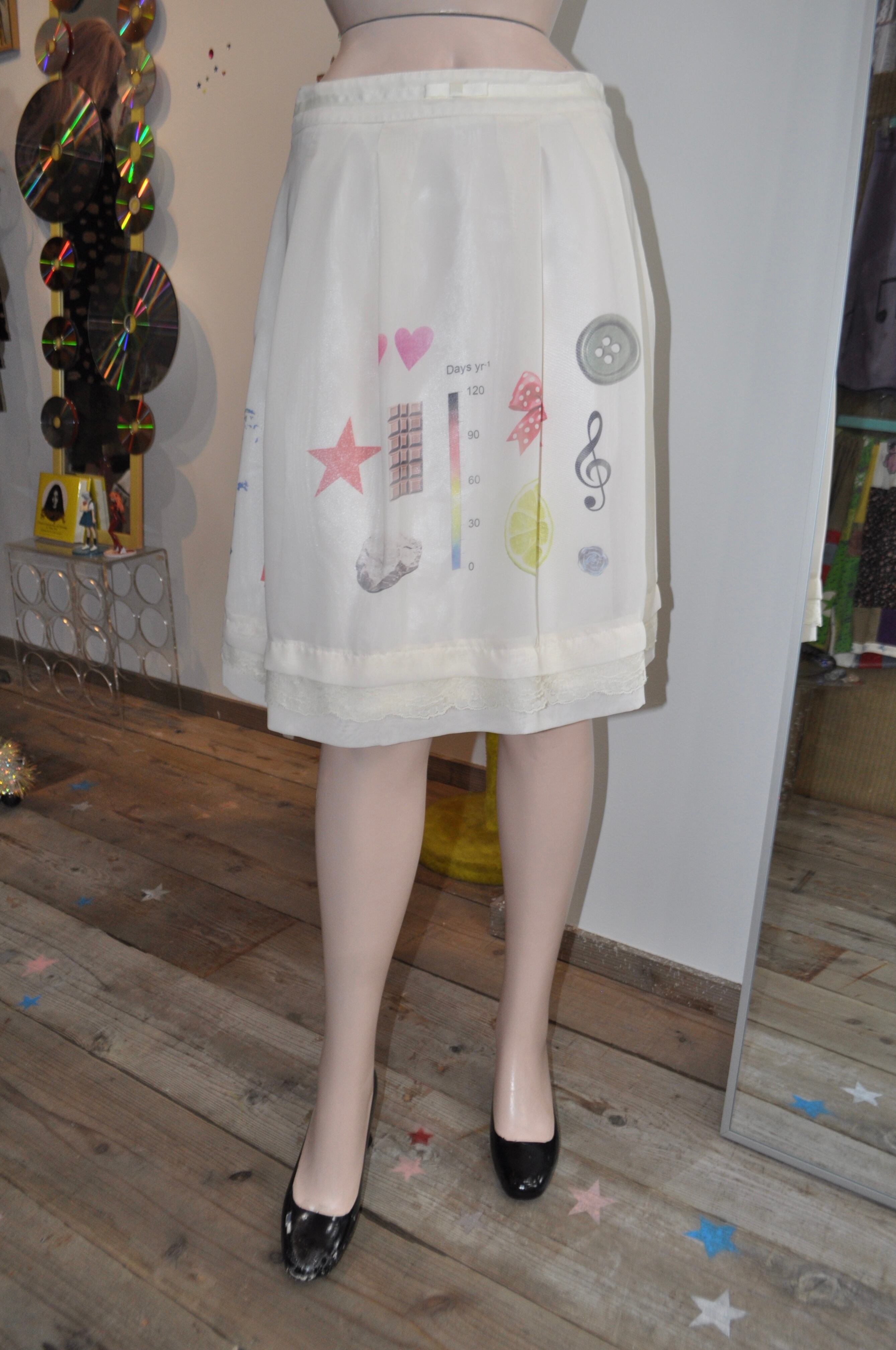 どれみ「白くてきれいなフレアスカートにあえてたくさんのデザインを重ねてみたの