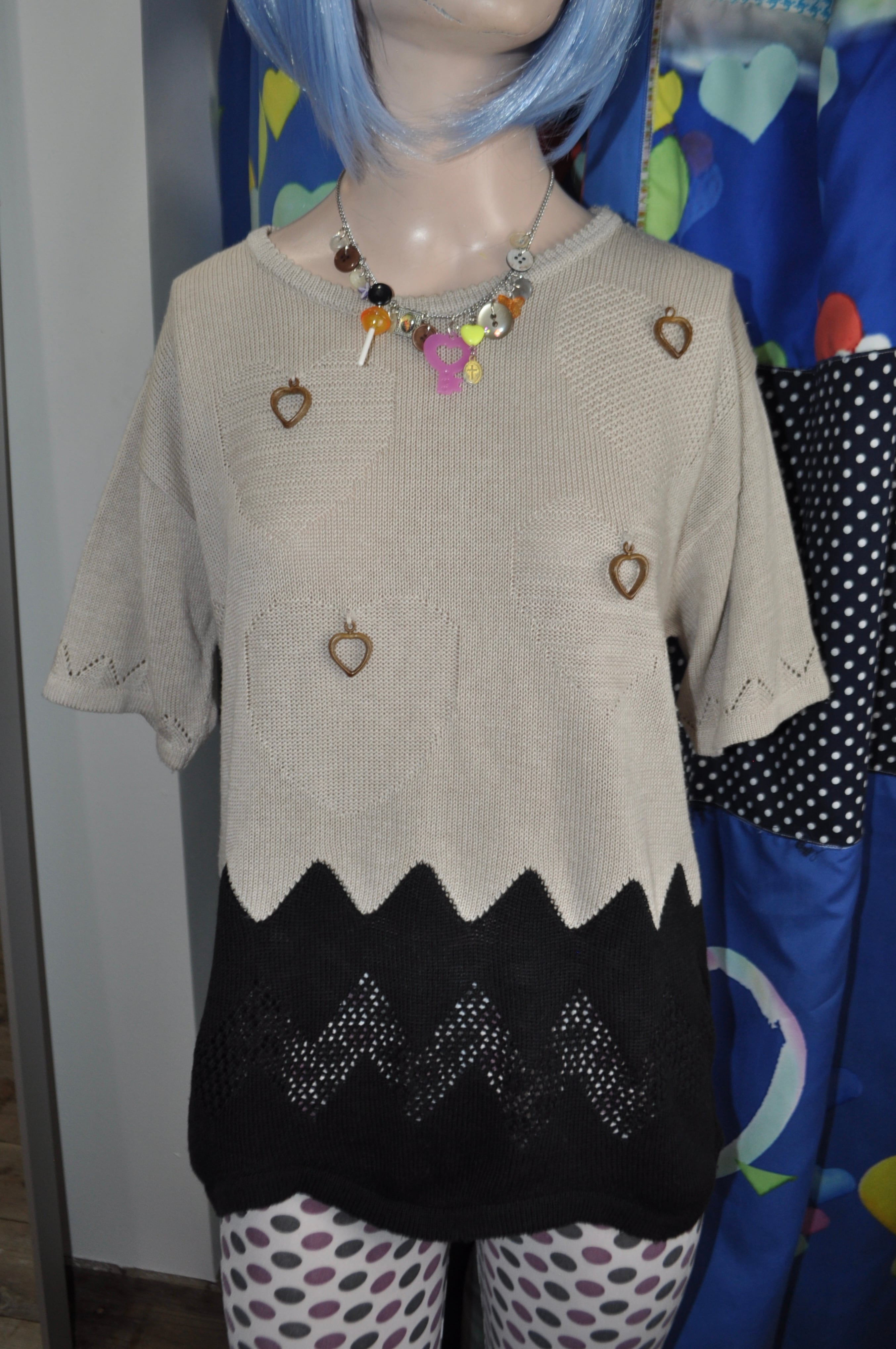 裾のギザギザと黒のコントラストがきれいで、ハートのデザインも控えめに散らばってるのが好きなの。