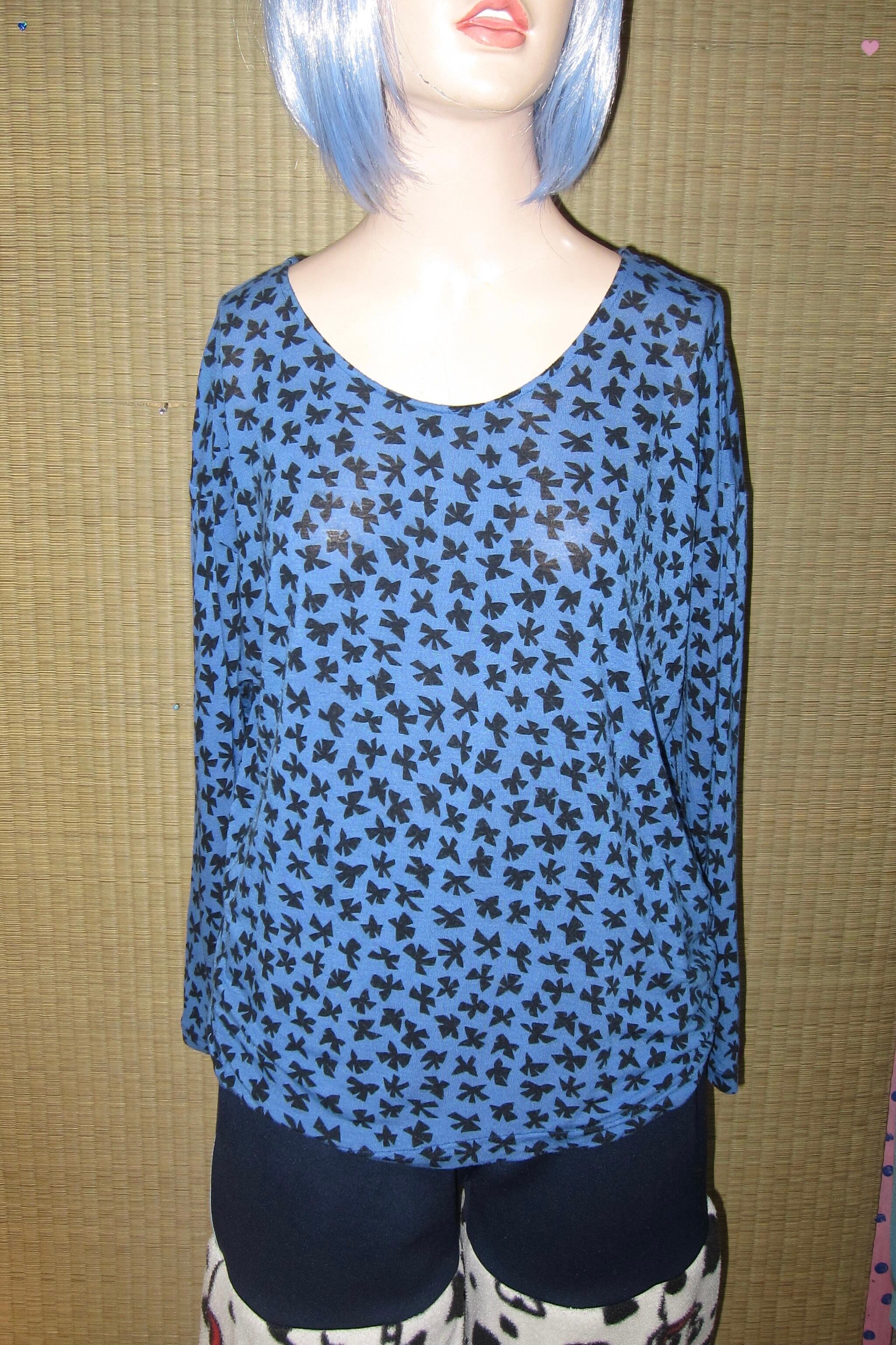 どれみ「落ち着いたブルーに黒のリボンが散りばめられていて