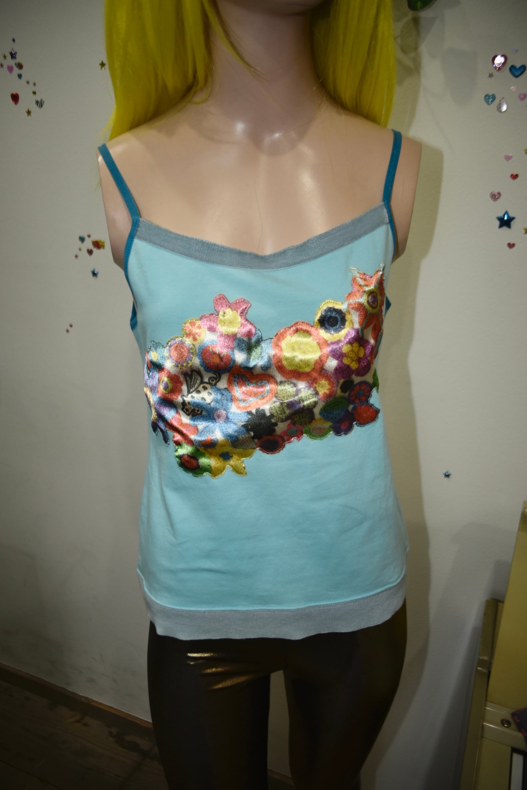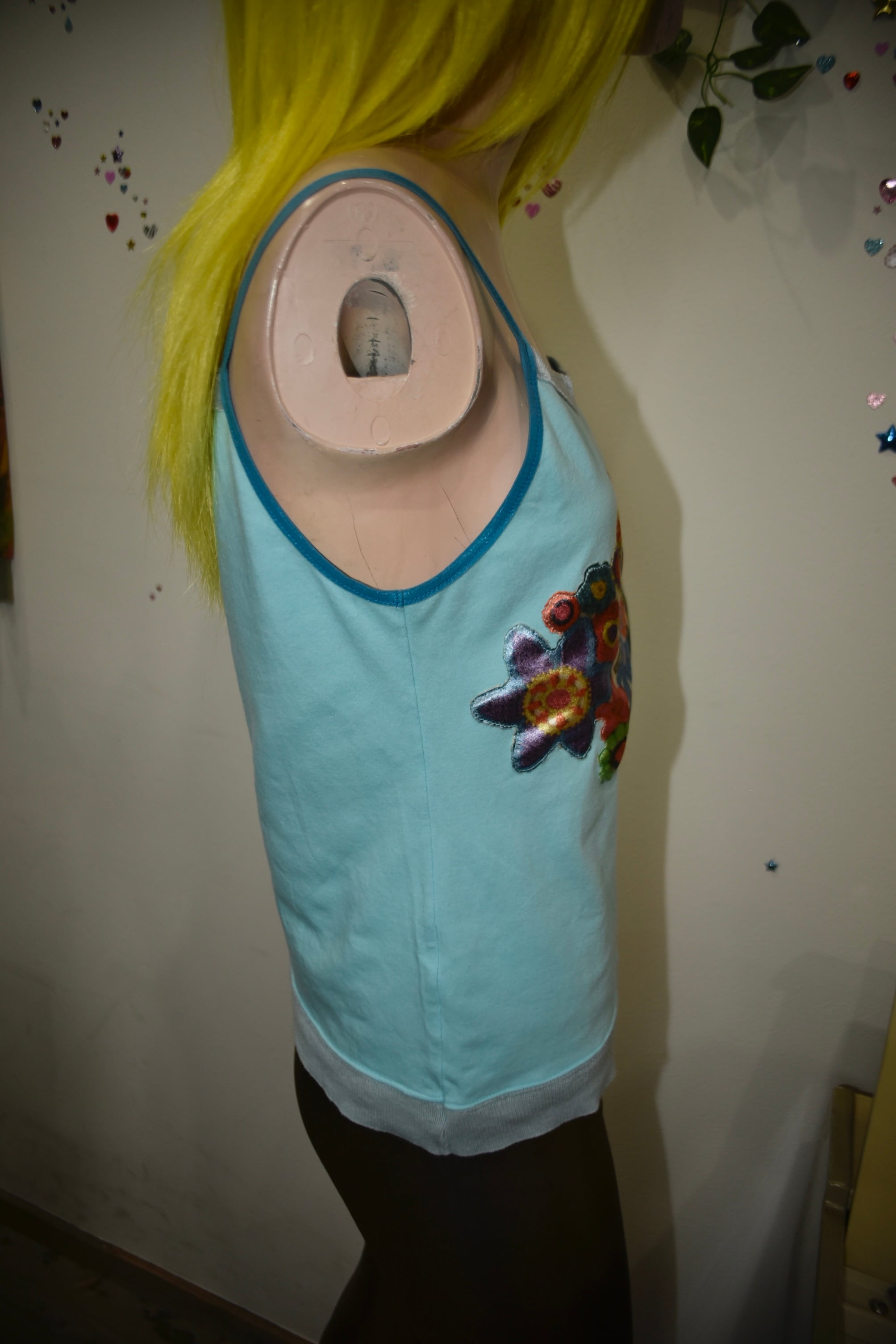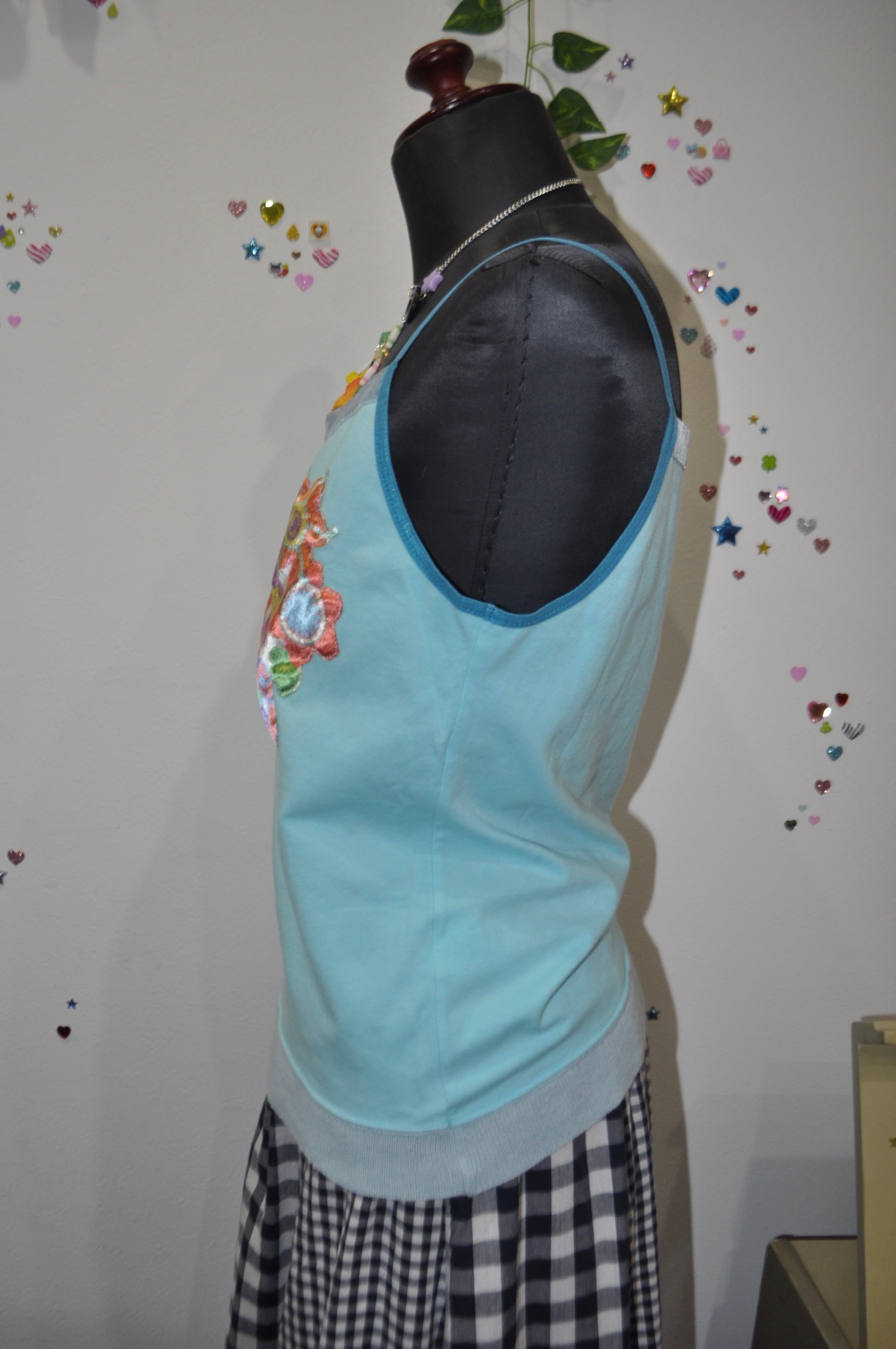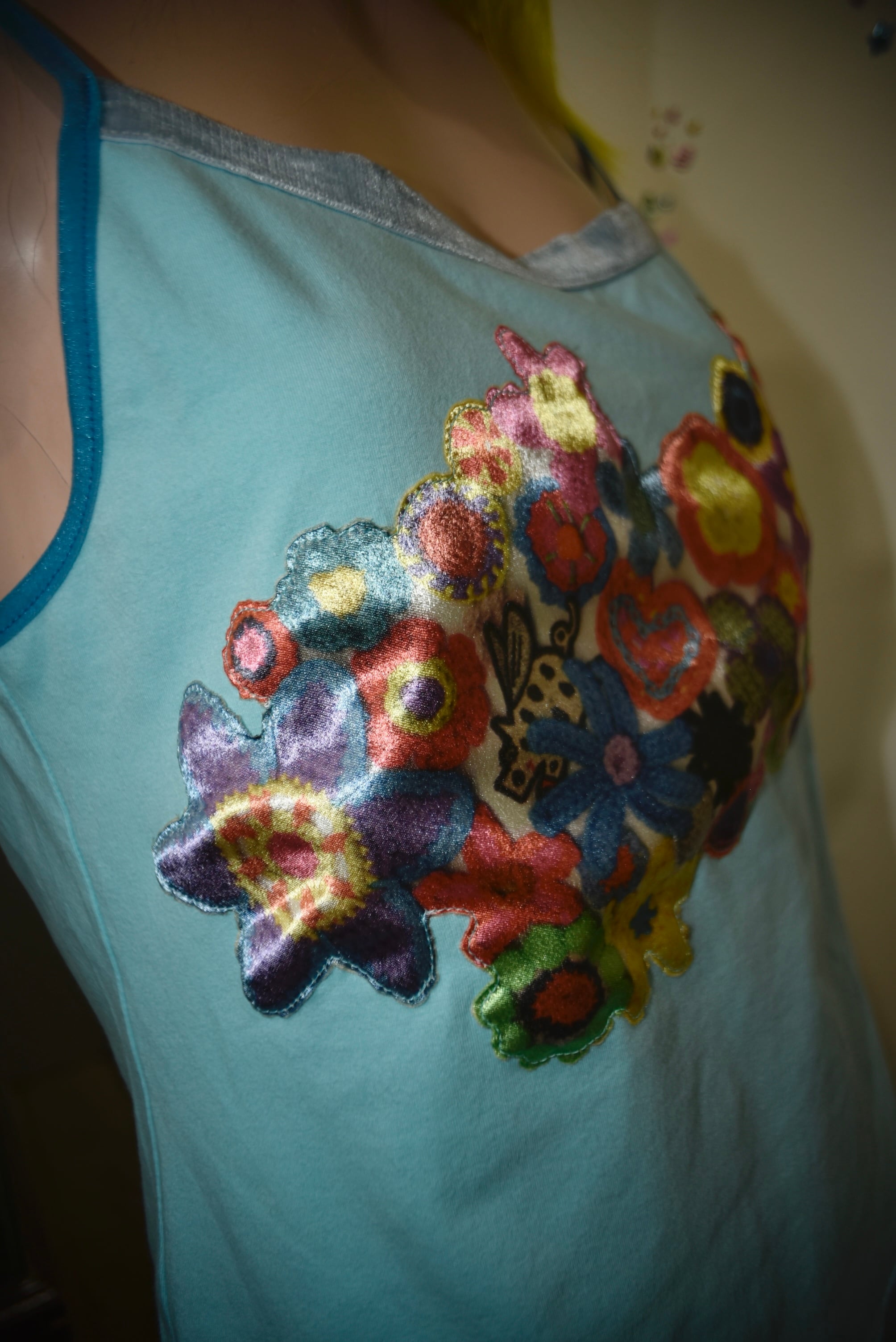 どれみ「やさしいブルーに、花を重ねて、ツヤのあるプリントがきらっとしてるの。