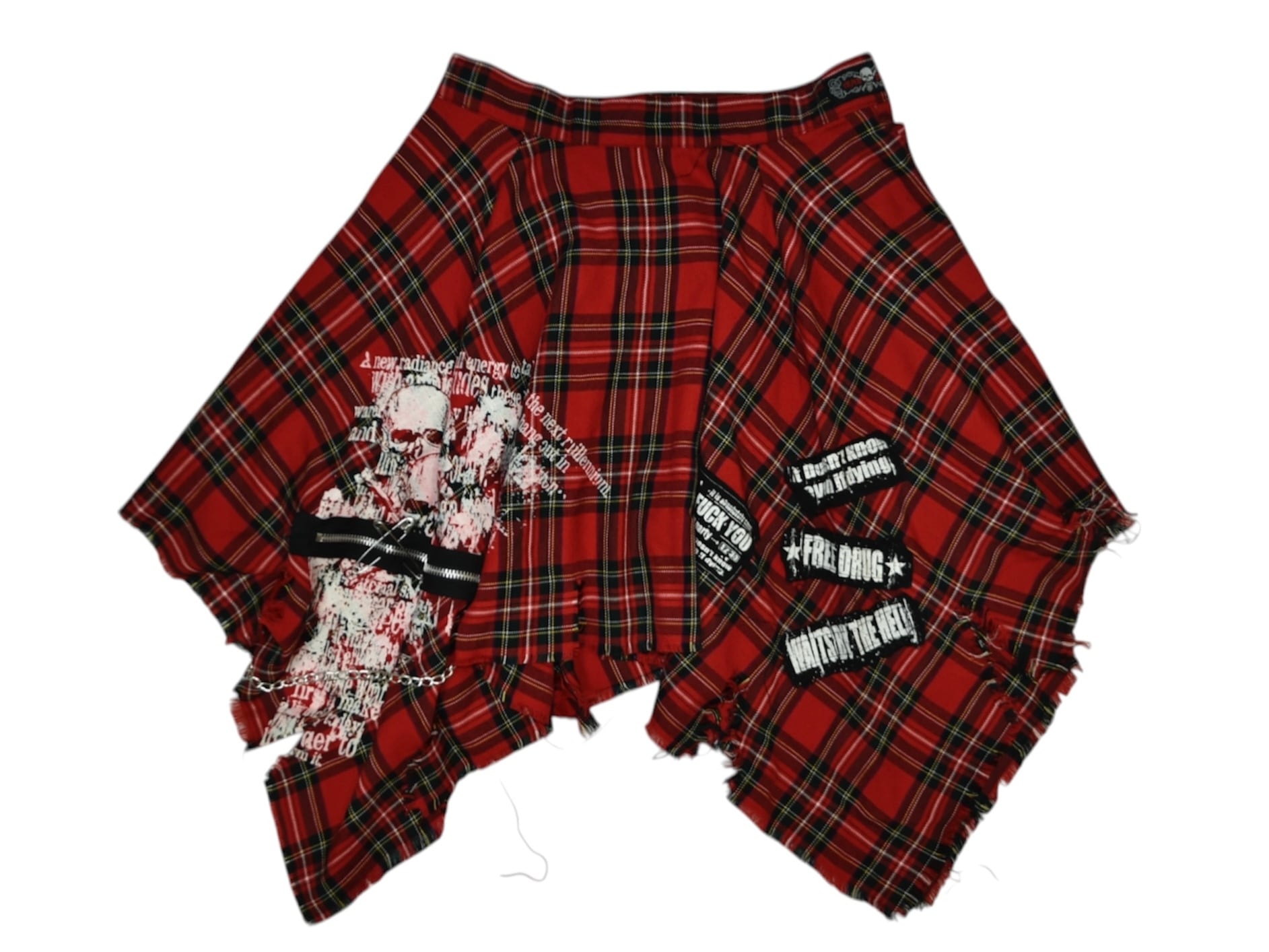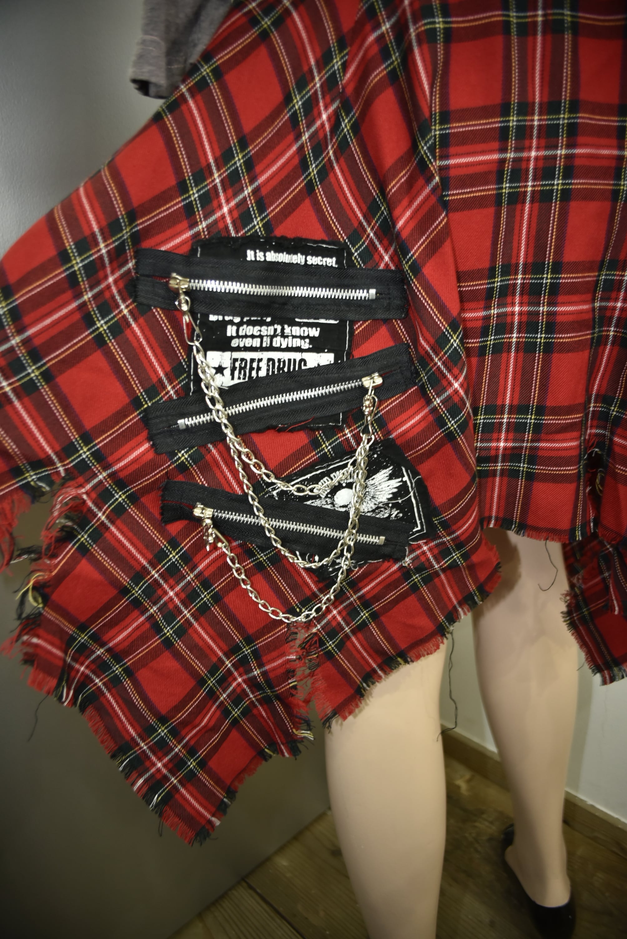 整ってない裾とパンクなディテールが重なってて、崩れてるのにちゃんと成立してるんだ。