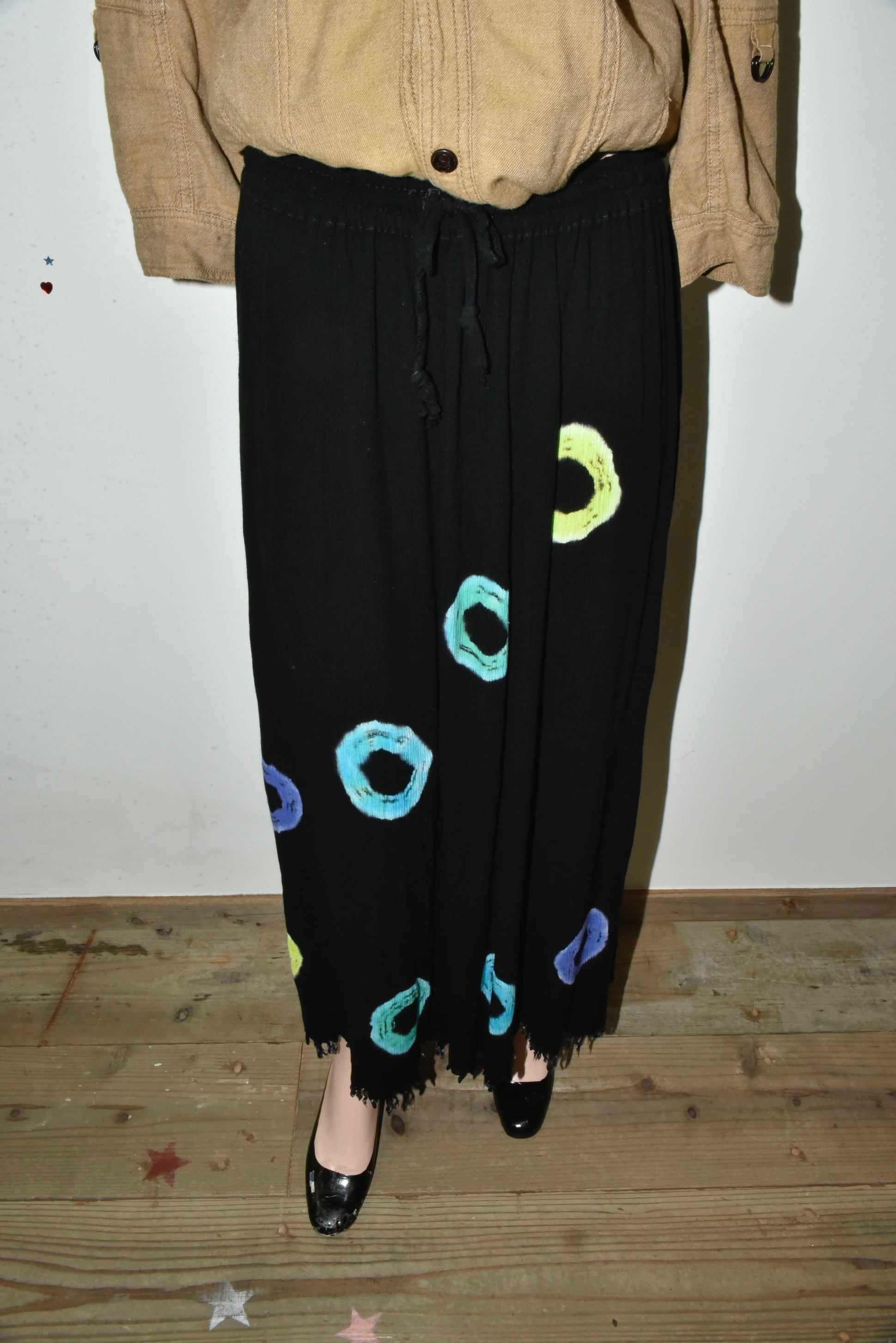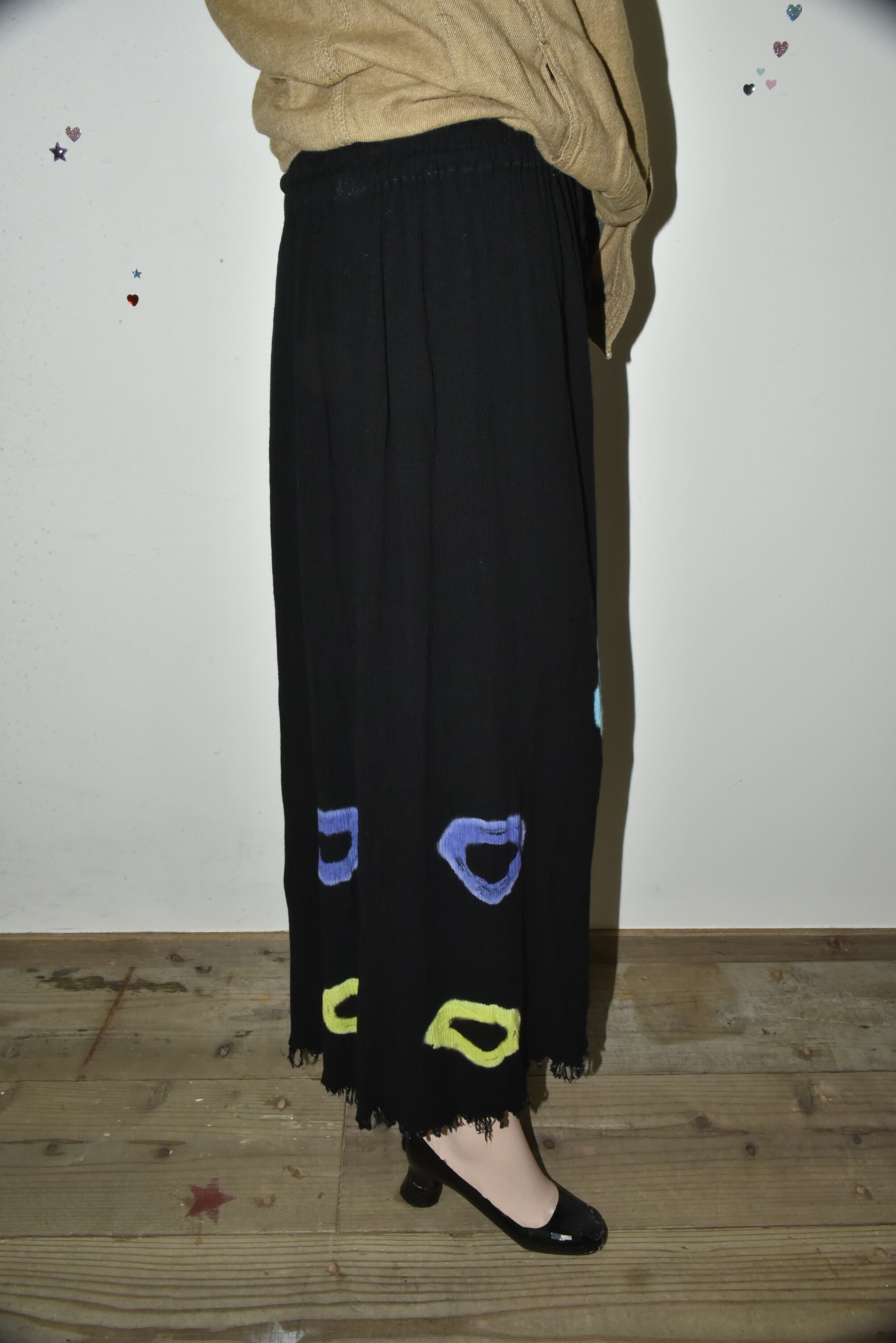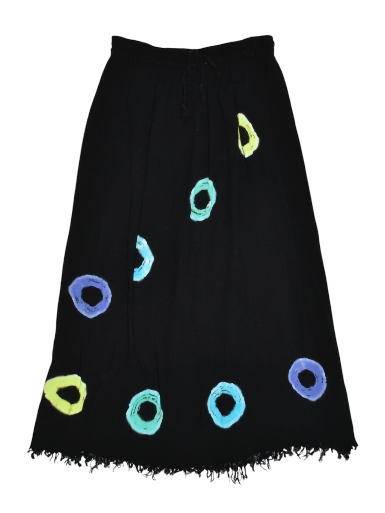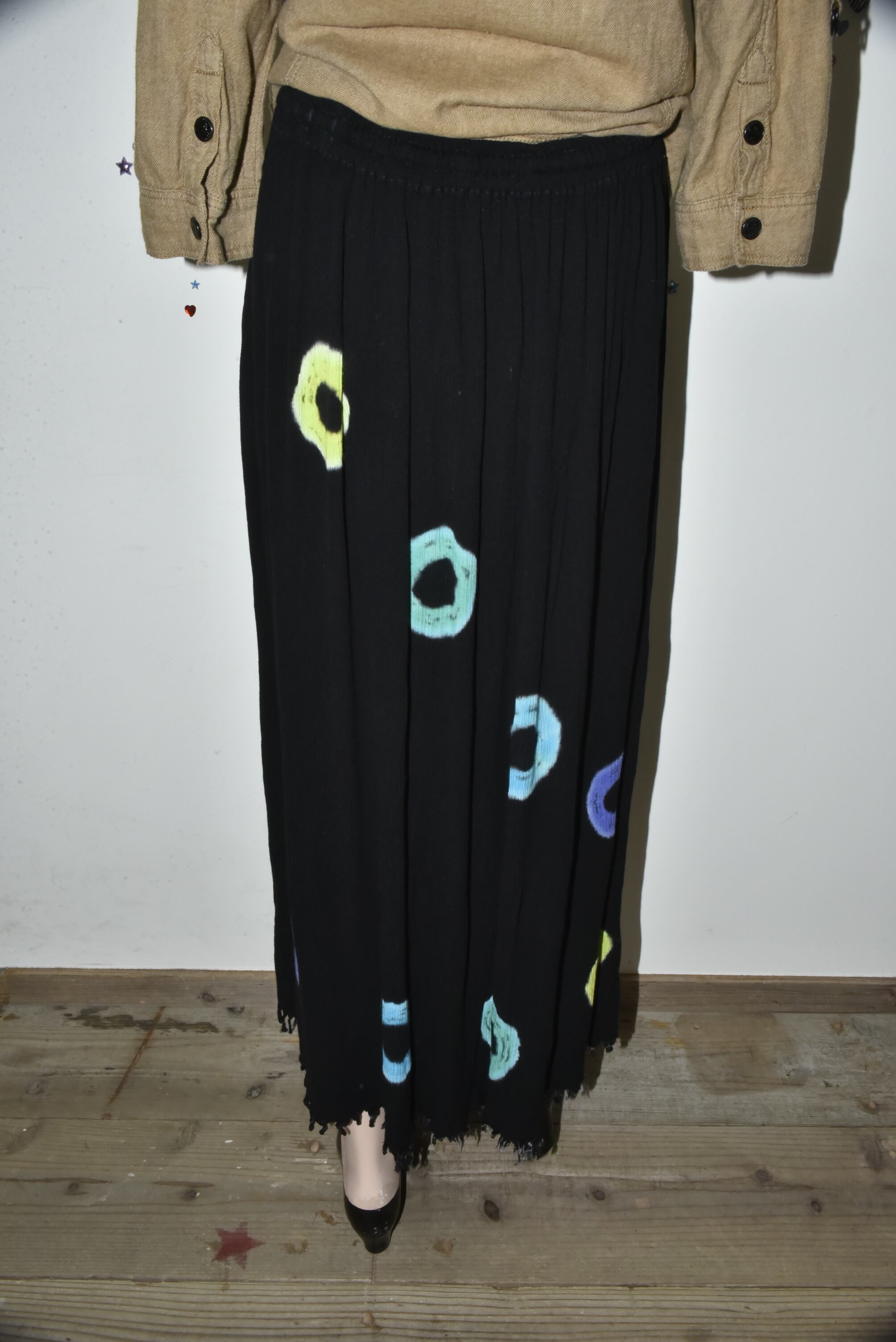 DoReMi Unique Series – Black Fringe Hem Dyed Long Skirt