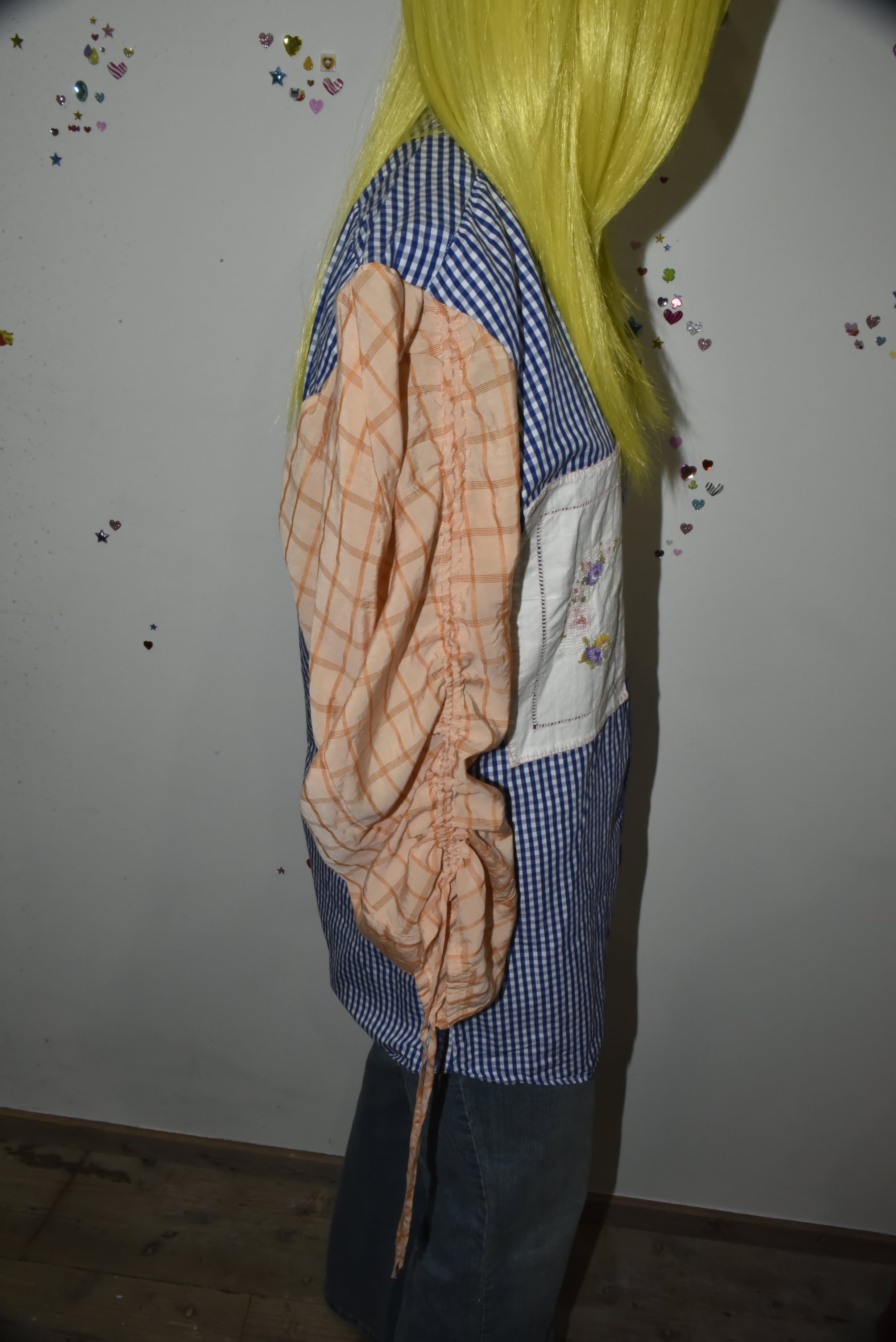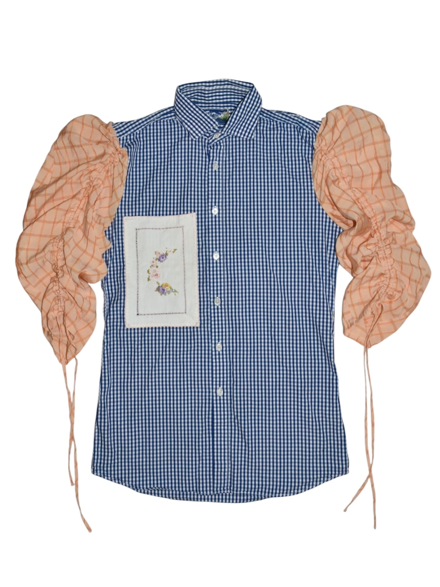 NETSU − Mixed Check Panel Shirt with Drawcord Sleeves