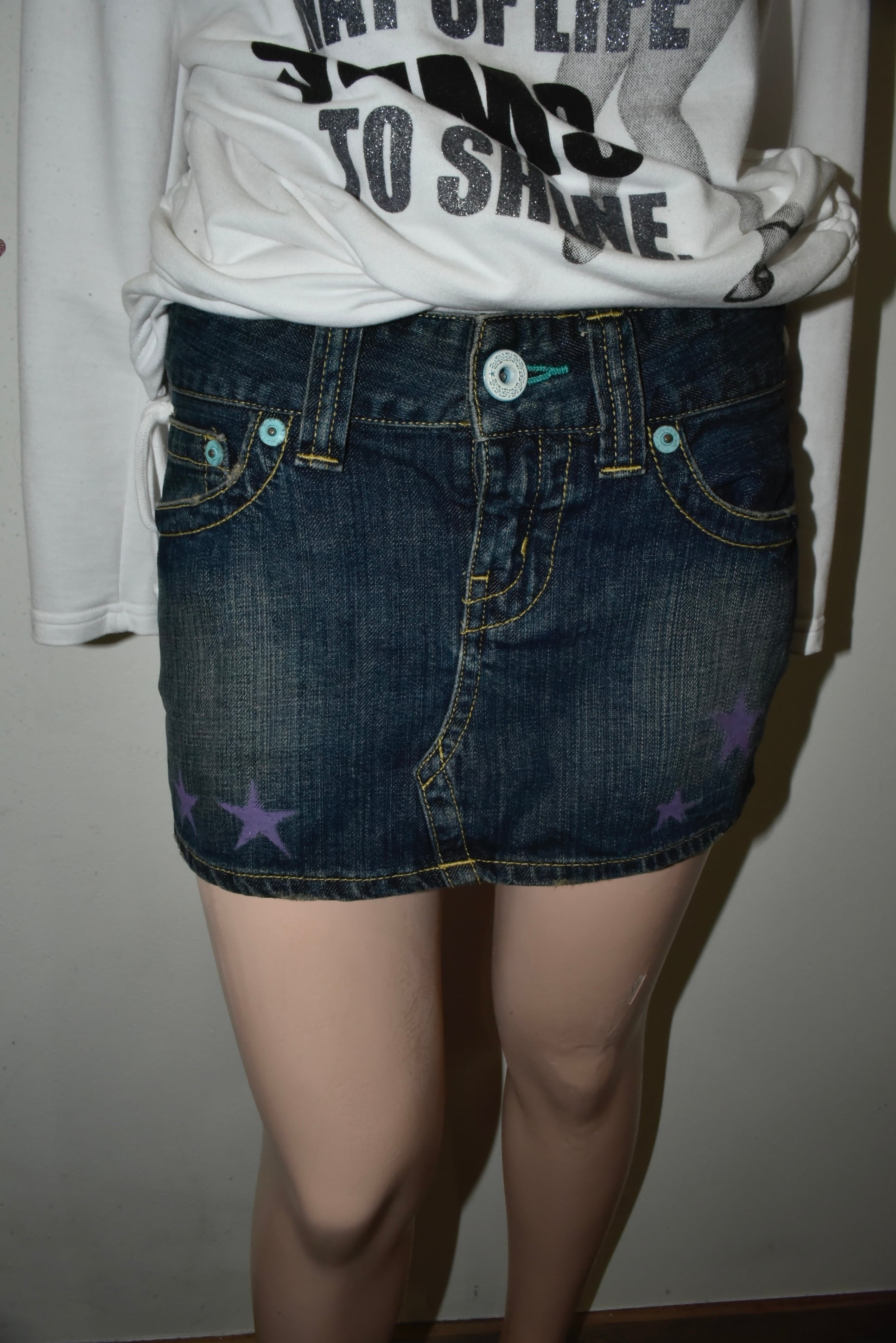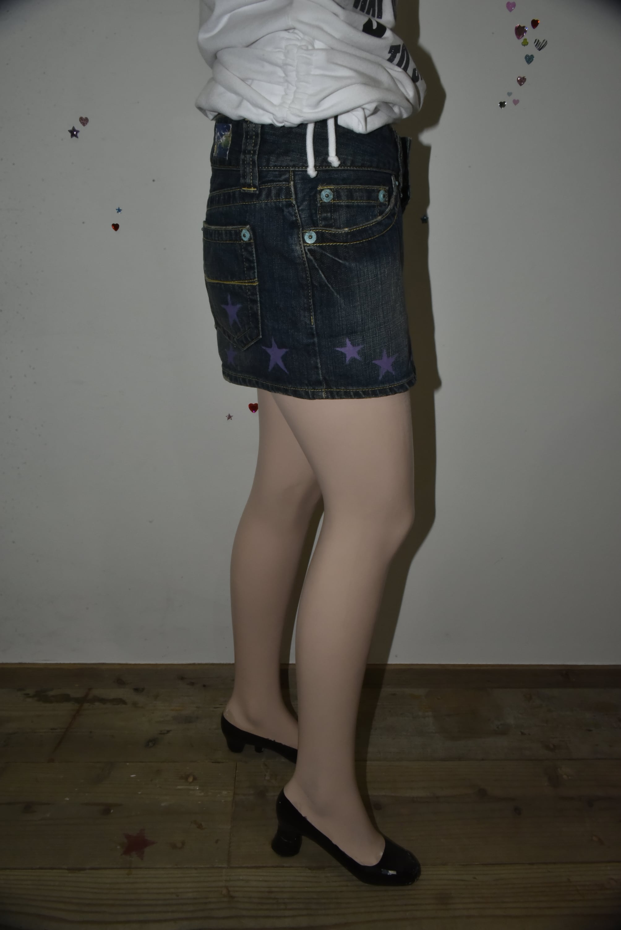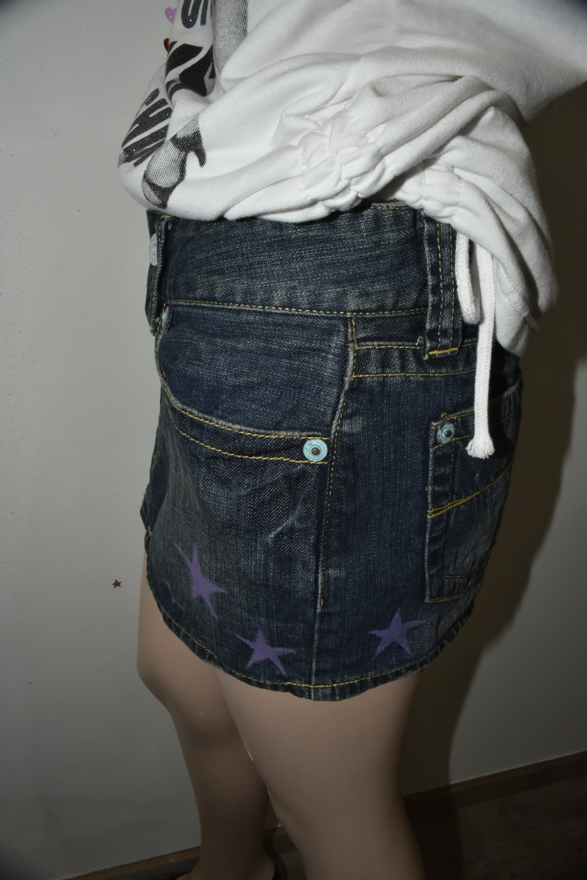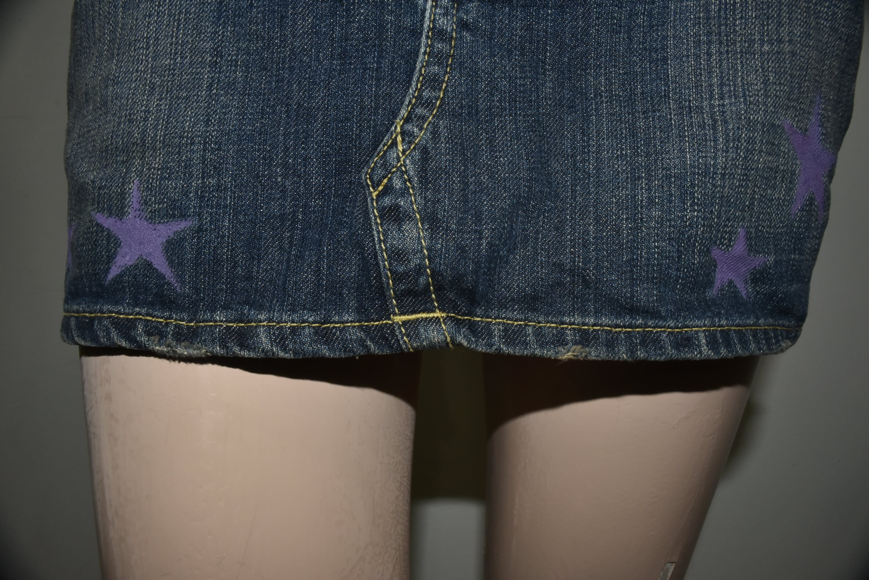 NETSU − Purple Star Painted Denim Mini Skirt