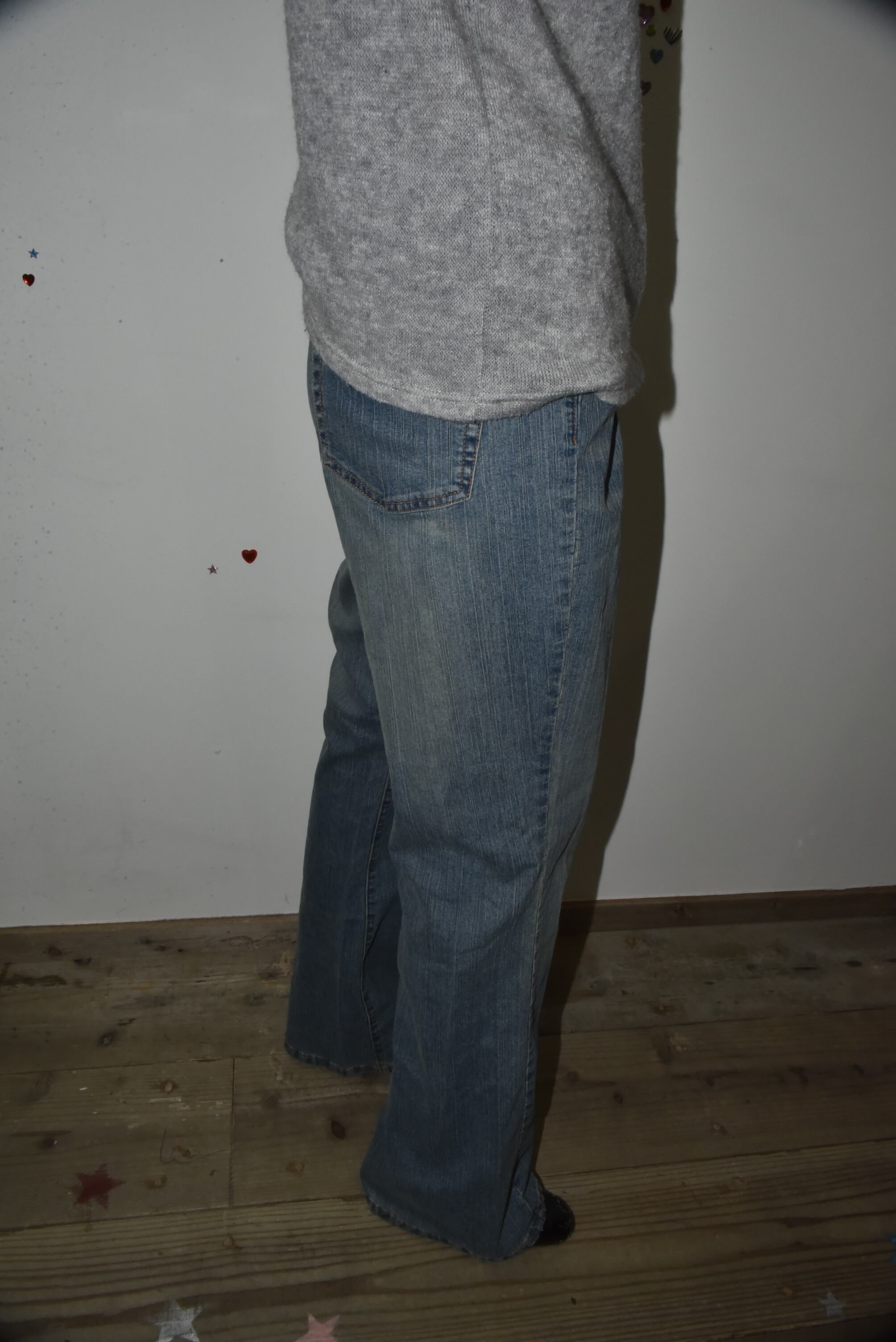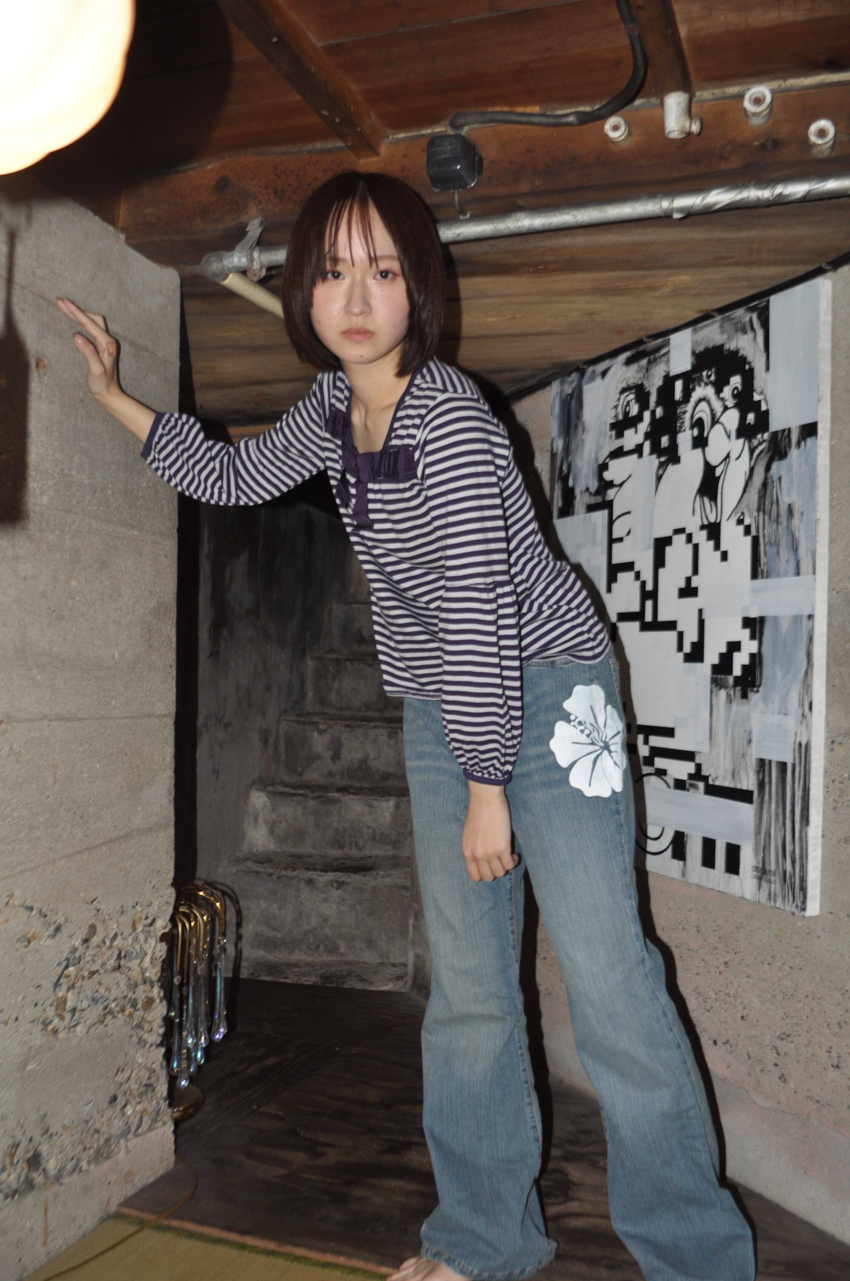 DoReMi Unique Series – White Hibiscus Detail Baggy Denim